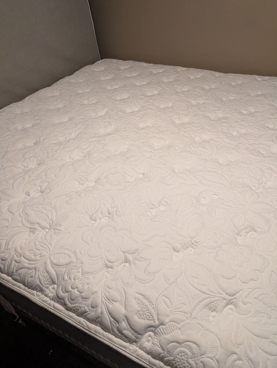 King size firm better sleeper mattress about 2 years old. Always had a protector cover no stains it was in Guess room. It comes with bed frame $140