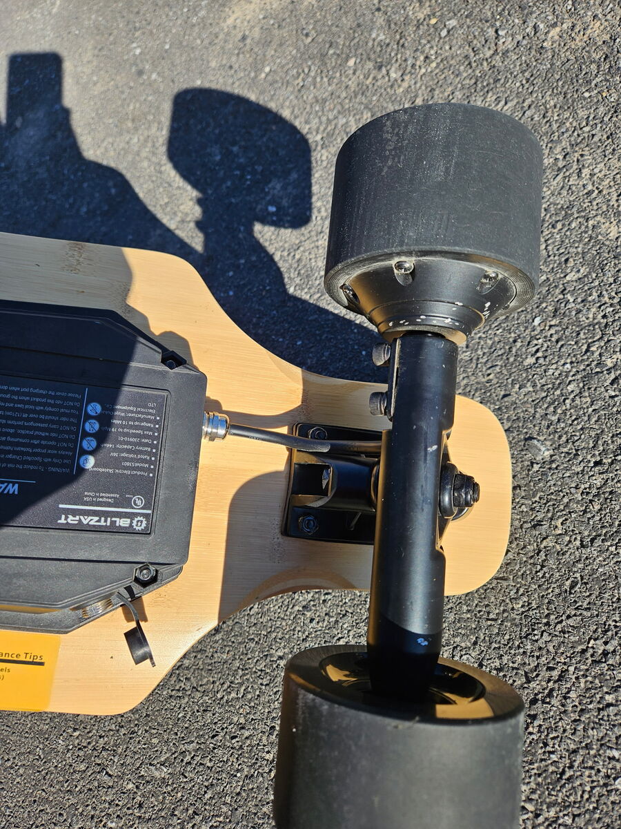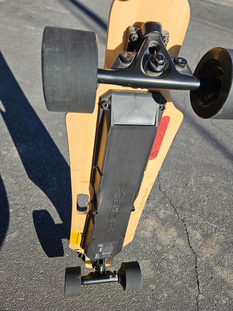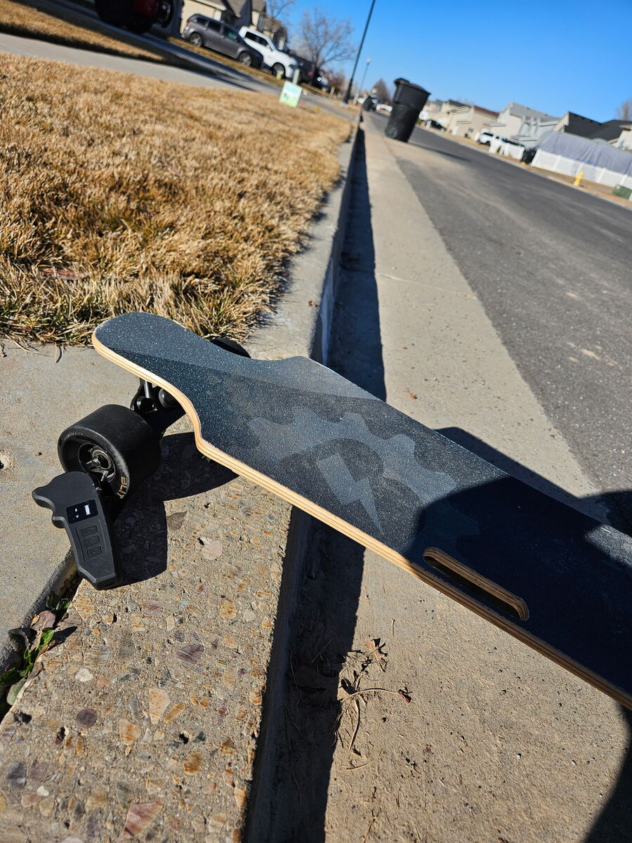 My son is selling his Blitzart Hurricane bamboo electric longboard. The supposed max speed is 19 mph. However, he has hit upwards of 25 mph. With a ten-mile range, he can make it from Clinton to Layton in about 40 minutes, with the battery dying around then. The longboard is 38” long and about 8 inches wide. Charging from dead to full takes about 3 hours. Max weight capacity is 250 pounds. It has a wireless remote that lasts longer than the longboard battery does, with five different speed settings, including really slow, slow, fast, really fast, and reverse. Acceleration and braking are controlled by a wheel on the remote. He has wrecked a few times on this board, all times being human error. The longboard never skipped a beat and still works like the day he got it.
