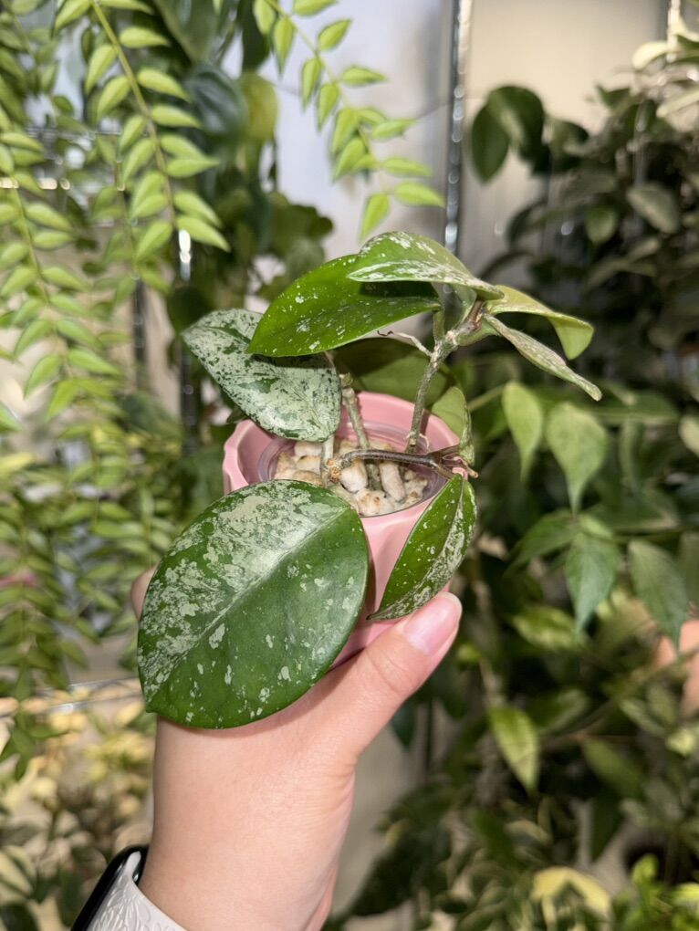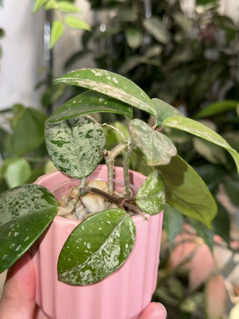 Venmo3 rooted cuttings that are all actively growing. It’s been in higher light and moving it to lower light will achieve darker leaves. Cover pot not included. Mama plant for reference in the first and last photos.