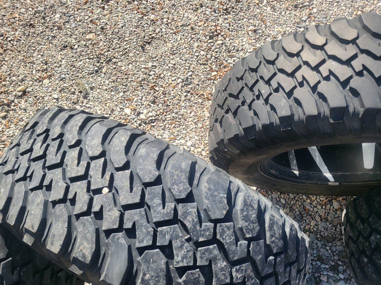 PayPalThese 5 wheels and tires are take-offs from a 2015 Wrangler Hard Rock Rubicon. Note the red jeep emblem. I'm not sure if there is anything else different about the wheels over an ordinary Rubicon. Tires are 255-75-17 (32") BFG Mud Terrains with 50% tread on 4 and less on the 5th.