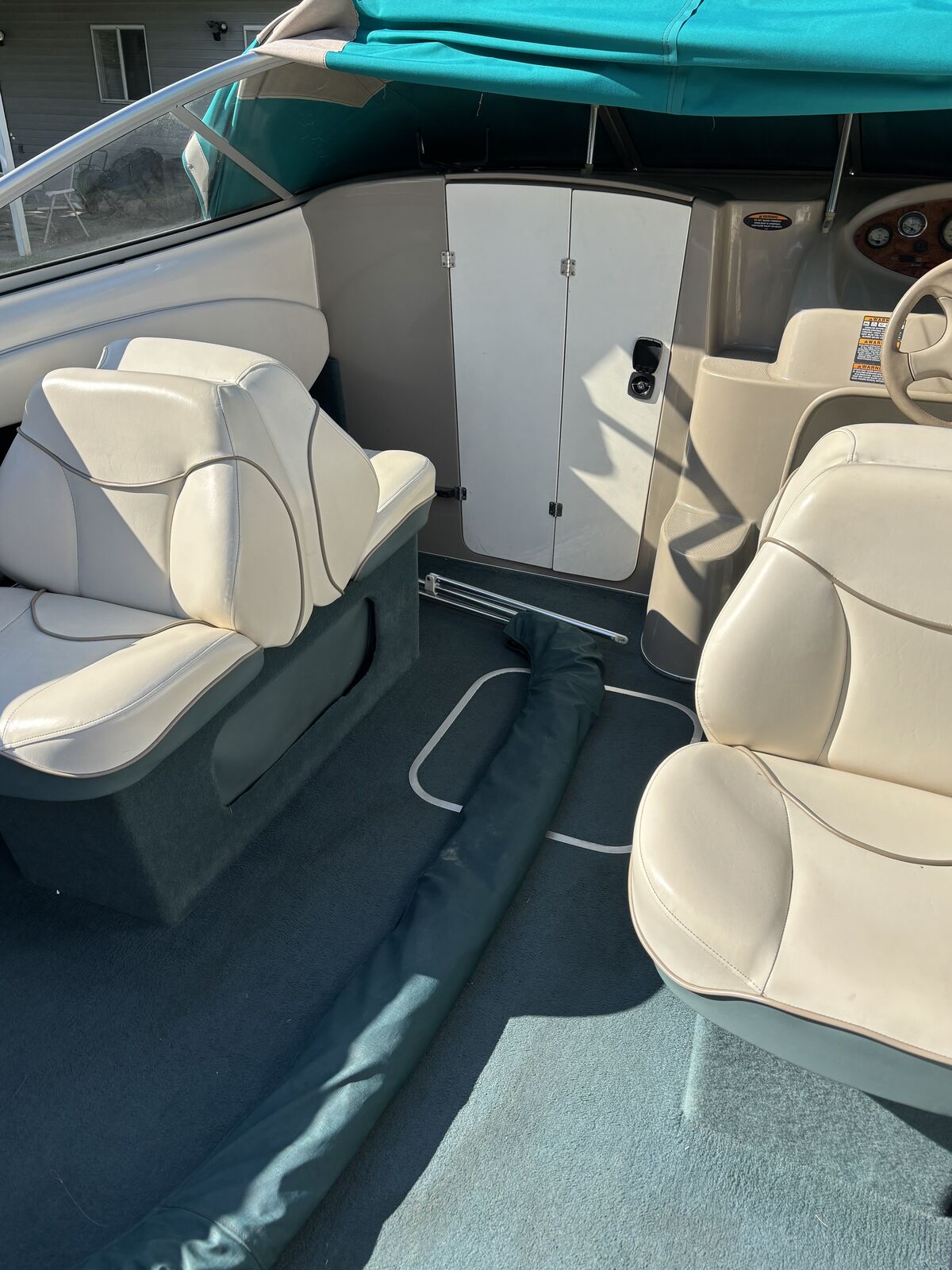 Immaculate 2000 Bayliner 2150 Capri Cuddy – a perfect blend of performance, comfort, and versatility. This well-maintained vessel is powered by a robust V-8 350 MerCruiser engine with under 150 hours, ensuring years of reliable adventures on the water. Outfitted for both fishing and cruising, it features a single downrigger for your angling needs and a brand new 9.9 Mercury trolling motor complete with remote steering and electric start for effortless maneuvering.