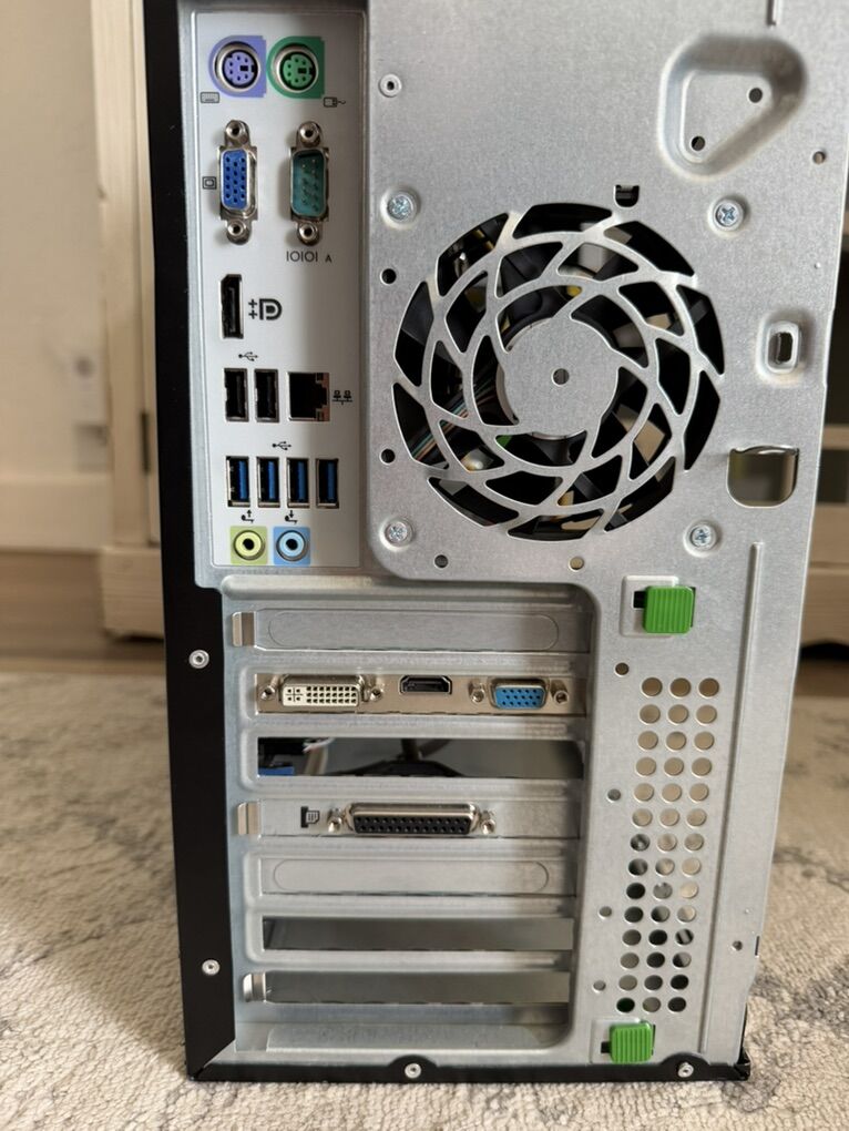 ApplePaySelling a HP Elite Compaq 8300 CMT in good working condition! It has an Intel i7-3770 @ 3.4ghz, 8GB of ram, a 250GB SSD Sata Drive, DVD Drive, and a GeForce 8400 GS GPU. Also comes with Office 365 Suite! Outside has some wear, inside is great! Test account on it with no password. No trades. Call or text anytime!