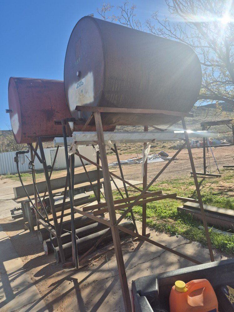 2 - 500 gallon fuel tanks on stands for sale. with hoses, filters, and gauge. we bought a fuel truck and don't need them anymore.