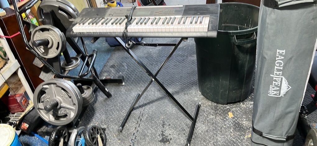 he Casio LK-165 Portable Keyboard features 61 keys, 400 built-in tones, stereo piano sounds, and more. There is a 1/8 (3.5mm) mini input for connecting external portable MP3 players, and a USB port for class compliant MIDI operation. Play along with up to 150 built-in rhythms and accompaniments that follow your chord changes. A built-in 10 second sampler lets you sample clips from MP3 players and other external sources.