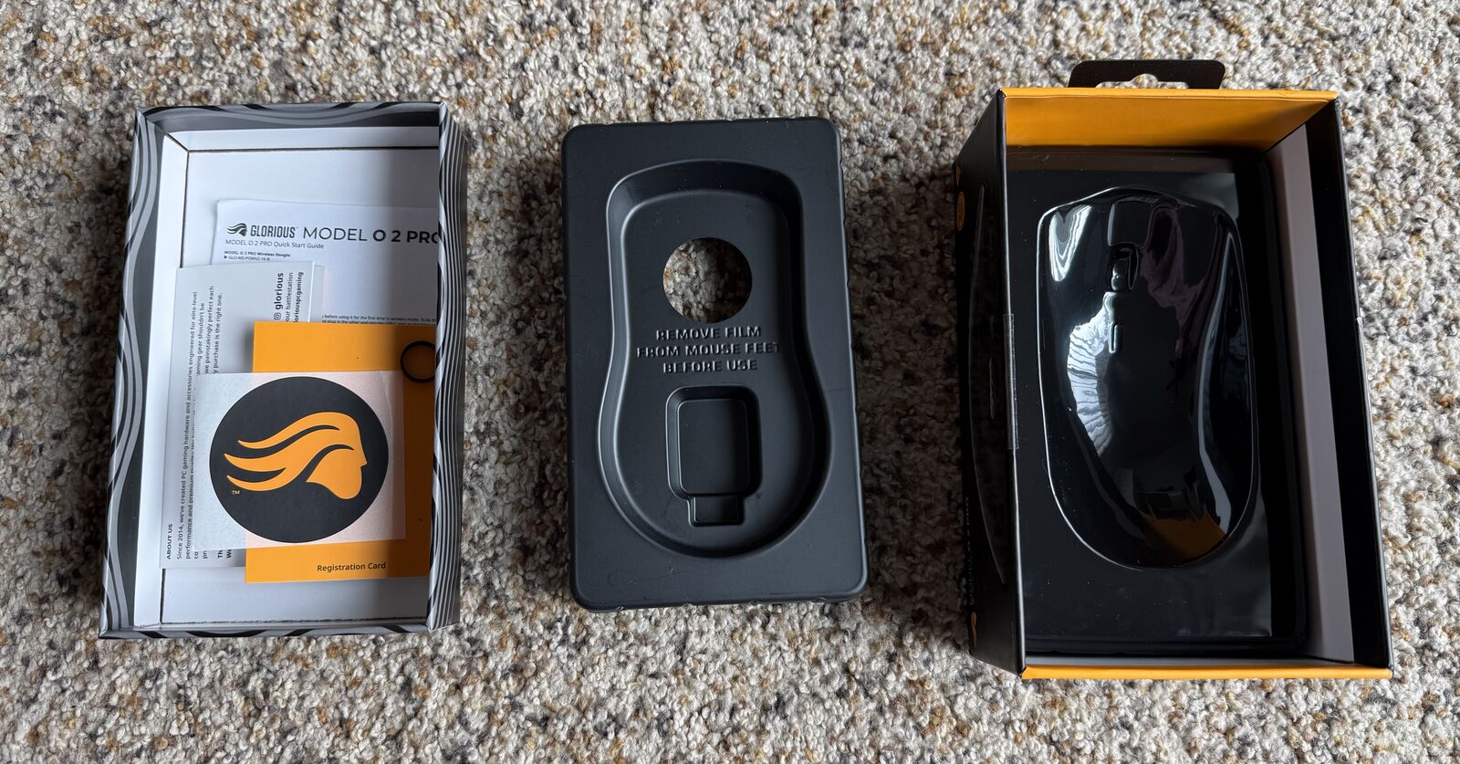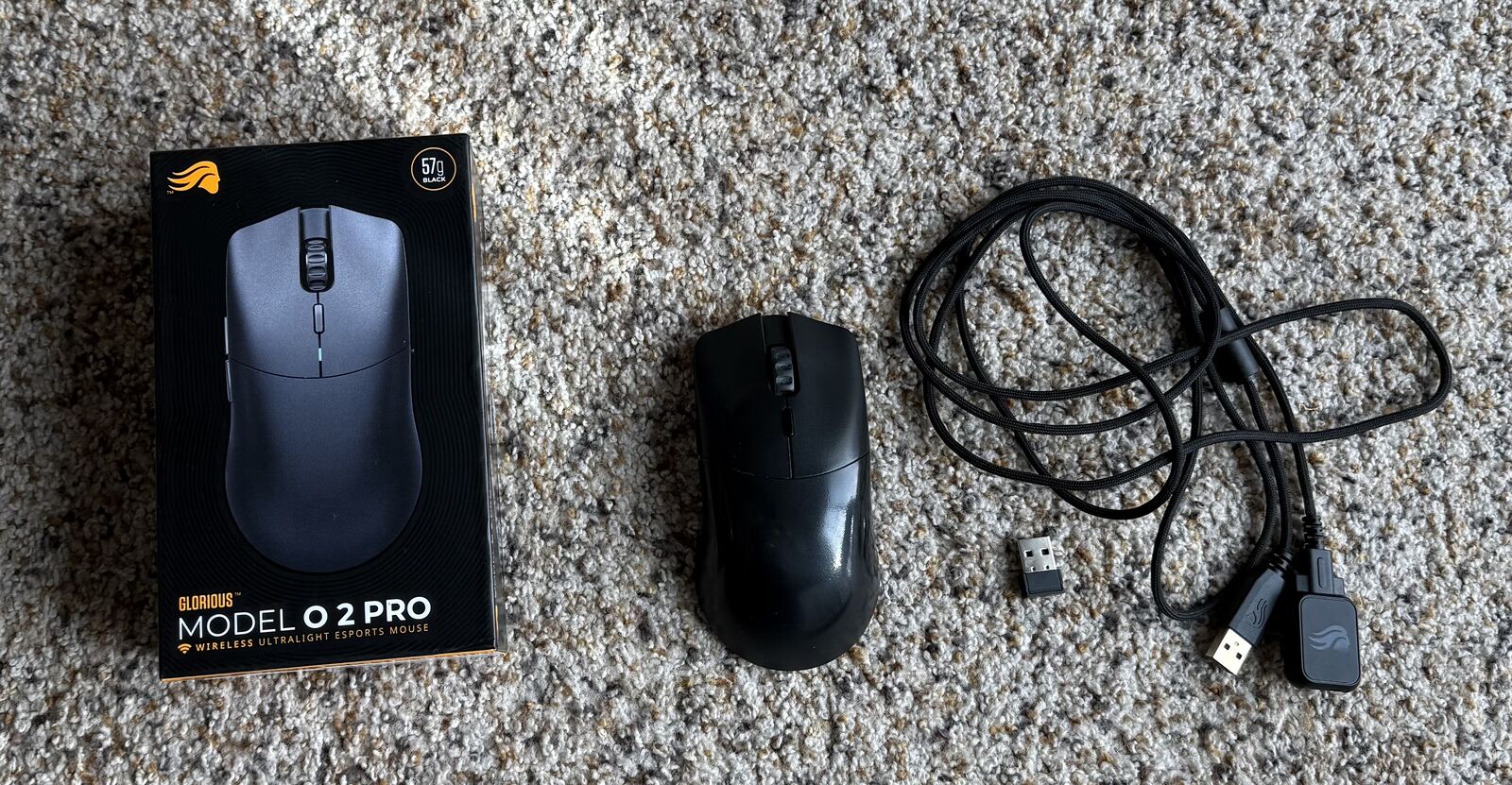 Glorious Model O 2 Pro Wireless Ultralight Gaming Mouse. This high-performance esports mouse is designed for speed, precision, and comfort, making it perfect for competitive gaming or long gaming sessions. It features an ultra-lightweight design, low-latency wireless connectivity, 1,000 polling rate, and durable optical switches for responsive clicks. The mouse comes with the original USB dongle and charging cable. Compatible with both Windows and Mac systems.