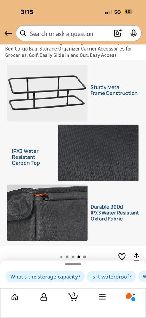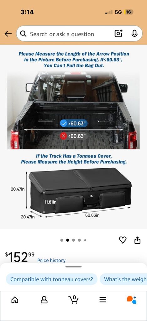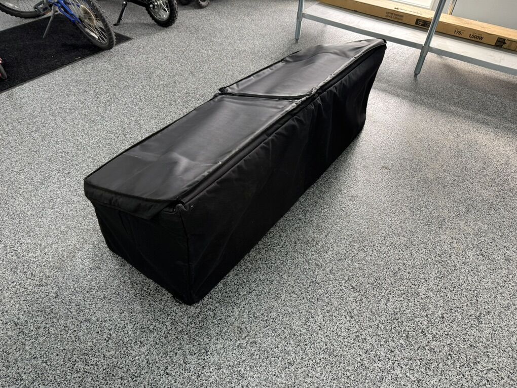 New, truck bed storage box, has a steel internal frame to hold its structure, waterproof top, multiple pockets inside and out. 60” wide x 20” tall x 20” deep. Retail is $150.
