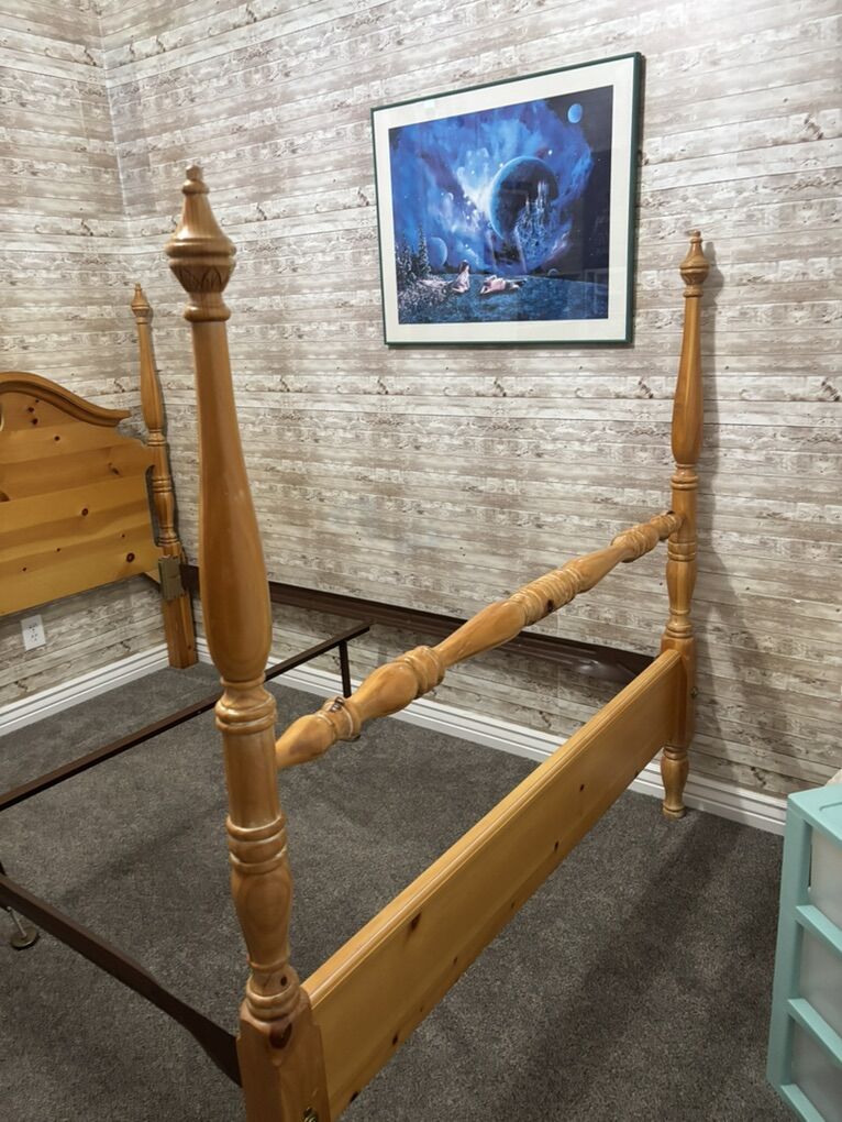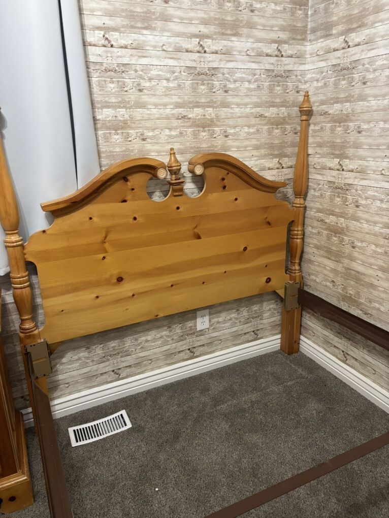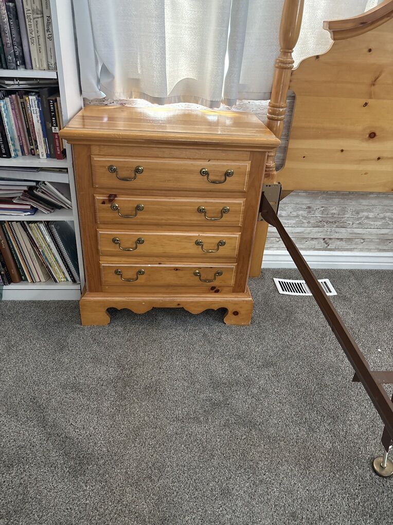 I have a Queen size bed, with dresser and night stand. Made of pine wood. Must sale as a set. $250.00.