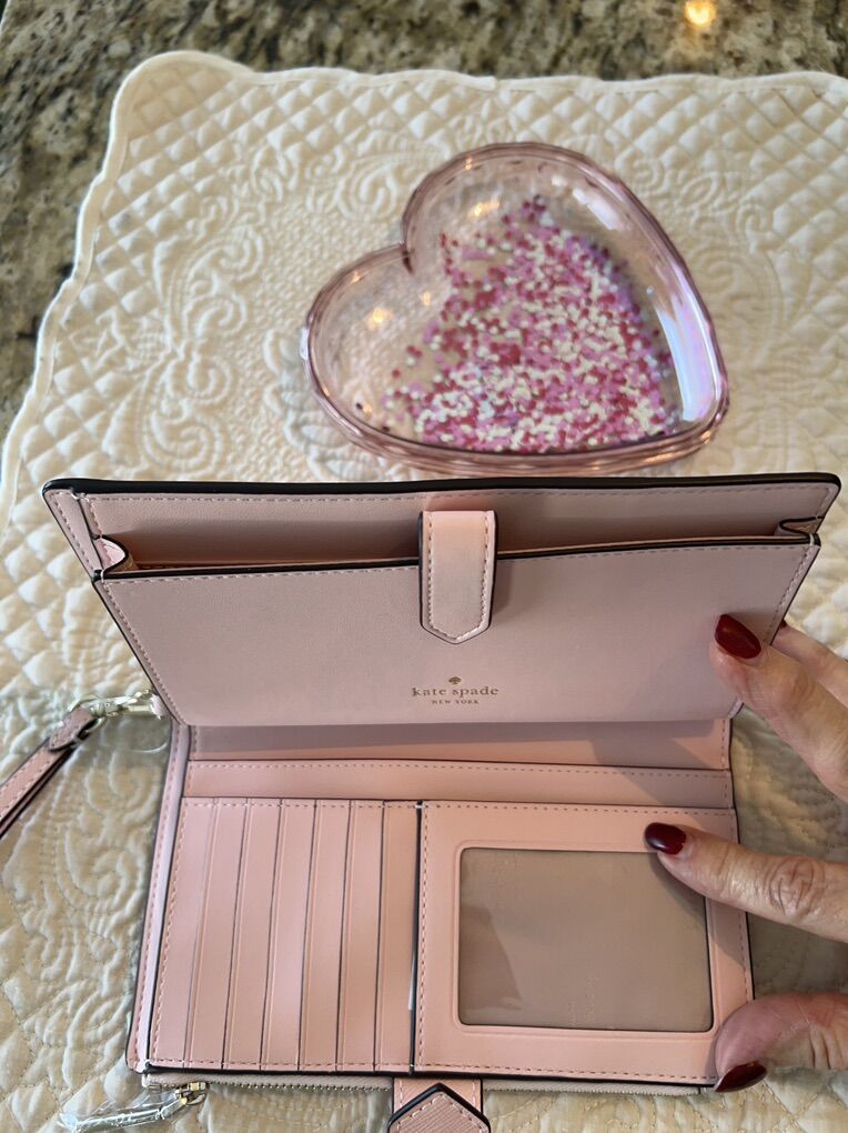 VenmoA beautiful gift for the lady in your life this Valentine’s Day! 🩷 Sure to be a favorite, this Kate Spade pink wristlet measures 7.25 w x 4.5 h x 1” deep. It holds everything the leading lady needs to carry including space for a cell phone!