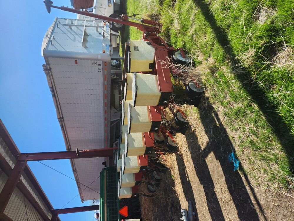 6 row corn drill, set at 30" spacing. Has fertilizer boxes aswell with row markers.