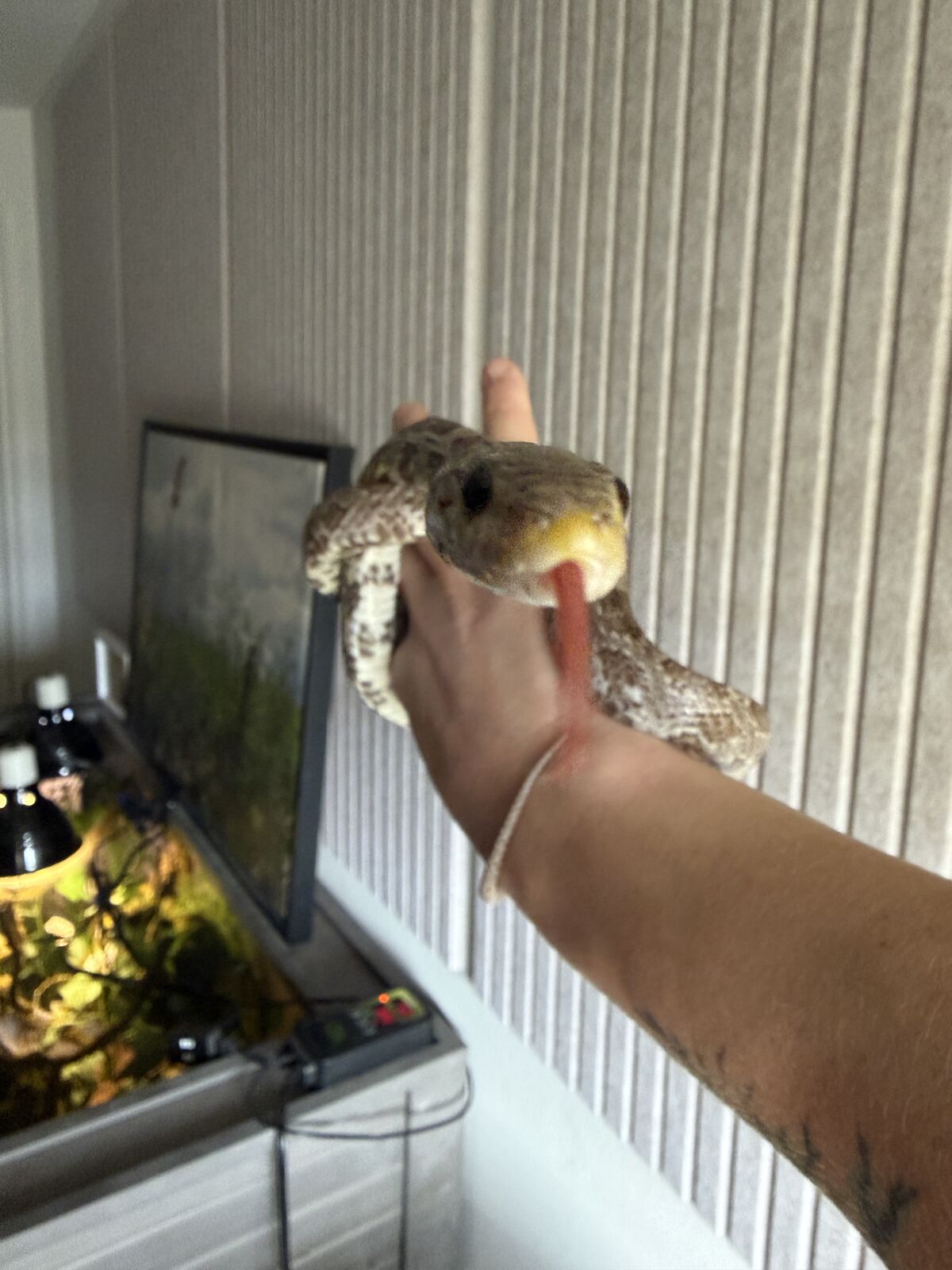 CashApp5 or 6 years old. Raised from a baby, and delivered by VMS herp. A really good boy. Very timid and shy. Eats great. Has been fed frozen/thawed adult mice. Would be a great pet for kids and a companion for you. Needs a good home.