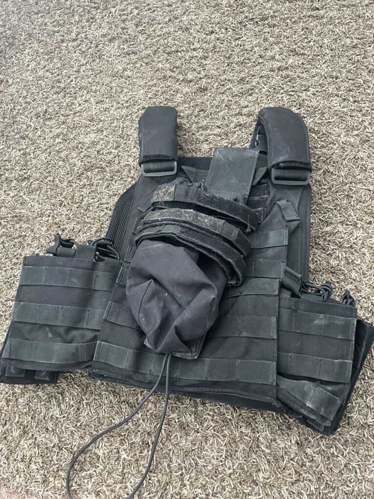 This is one of the coolest HPA guns you could come across it has a HPA Polarstar engine inside connected to a Gate Titan II unit equipped with Bluetooth so you can customize this gun to do literally WHATEVER you want from a quick semi to burst to 35 rps full auto it is your choice due to the Bluetooth connection from the Titan II. The HPA tanks provide lots of air while you play so you don’t have to worry about running out of HPA and even if you did you have the pump. Meanwhile the vest has a tank pouch equipped for easy carrying and multiple magazine pouches for ease of use. Comes with high quality regulator and HPA line from the regulator to the replica. It has a miniature grenade launcher on the front for whatever you want like clearing buildings or structures with your primary saving time