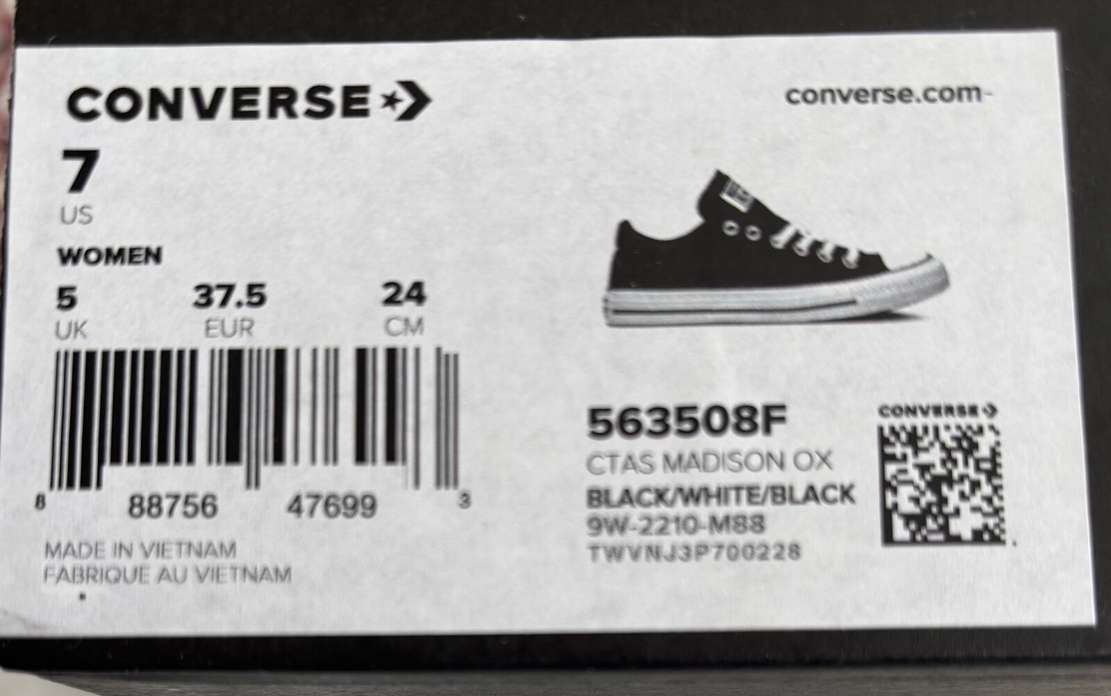 VenmoConverse Madison, low top, women's size 7, black. Brand new condition with box, worn once.