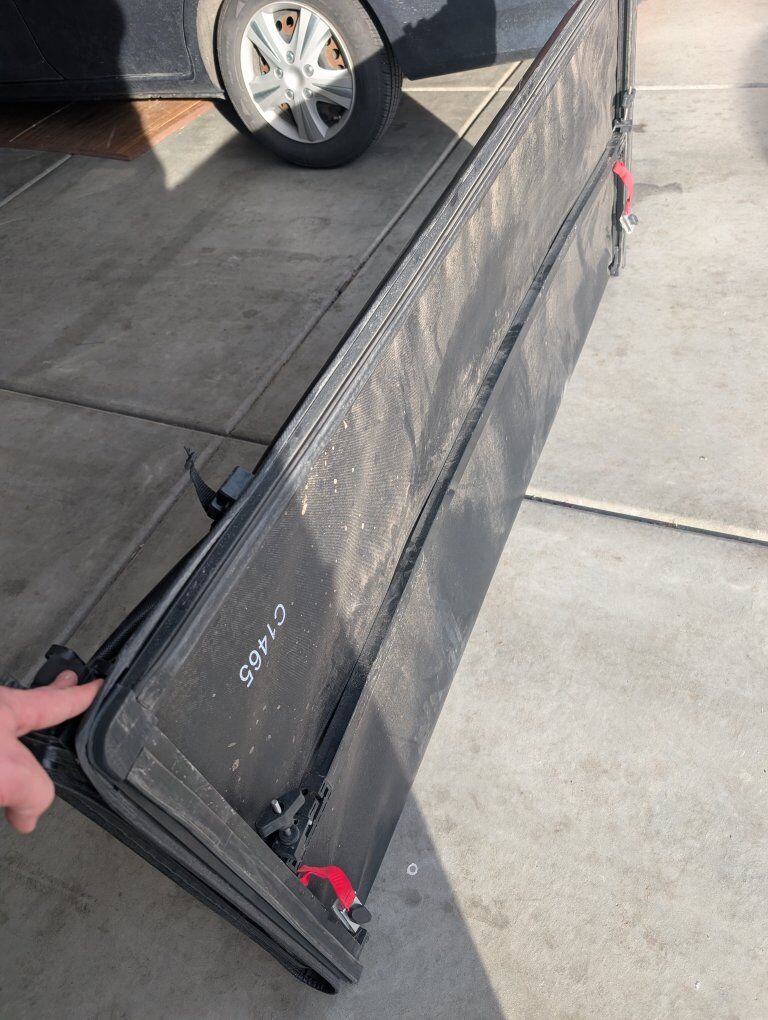 This cover went to a 2014 GMC Sierra with a the regular 6'6" bed. I recently sold the vehicle and this was sitting in the garage. Not sure of the brand but it is in pretty good condition. it has clamps attached to it so there is no need to buy any.