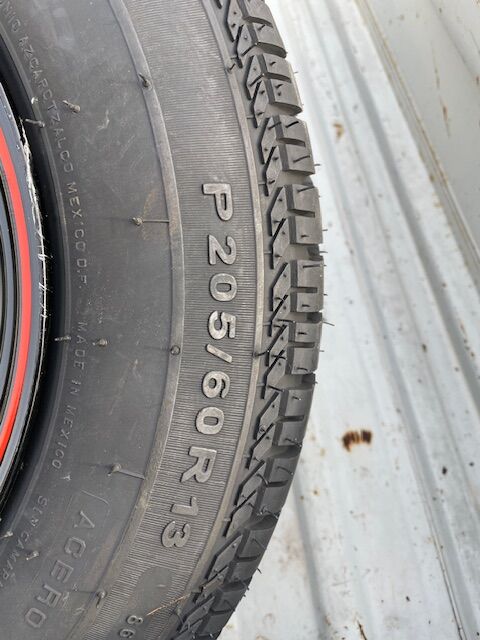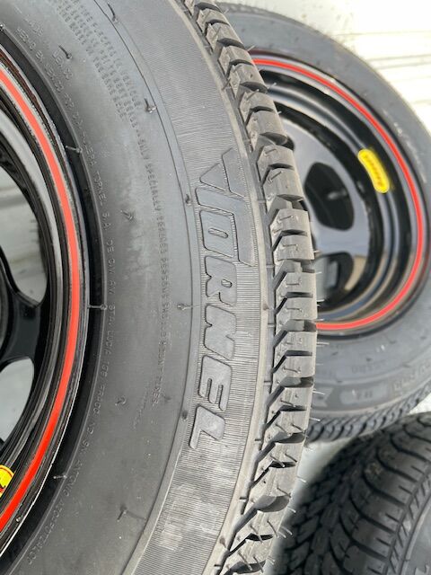 VenmoSet of 4 new 7x13 wheels and tires - mounted and balanced Bassett steel wheels - 4 x 4.5 / 4 x 114.3 lug pattern, 3 back space Tornel Direccional tires - 205/60 R13