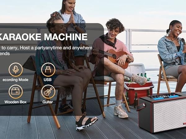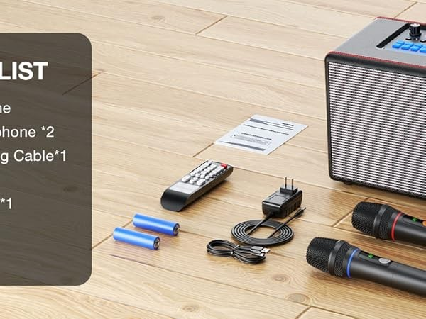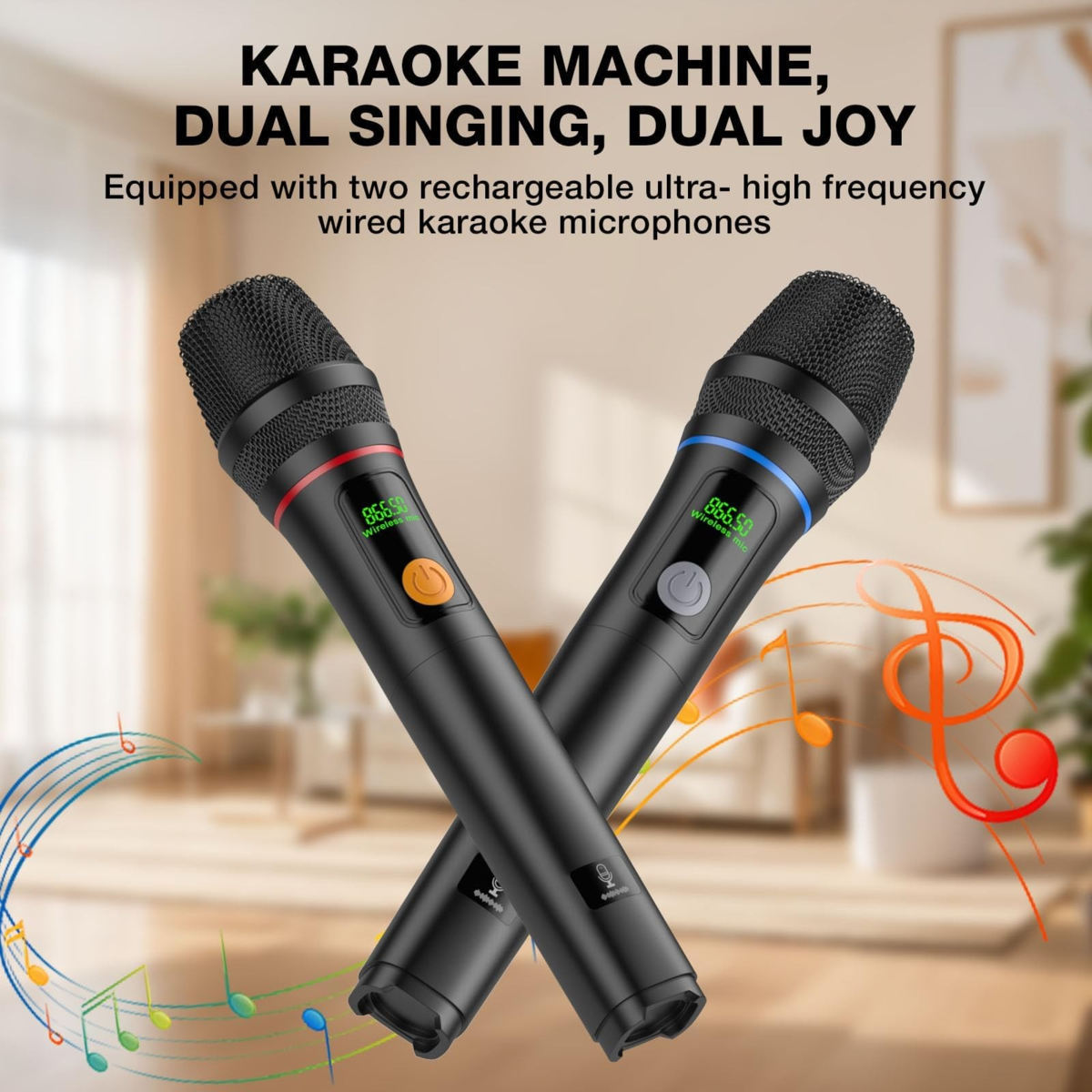 ZelleKaraoke Machine with Two Wireless Microphones, Portable Bluetooth Speaker for Home, Party