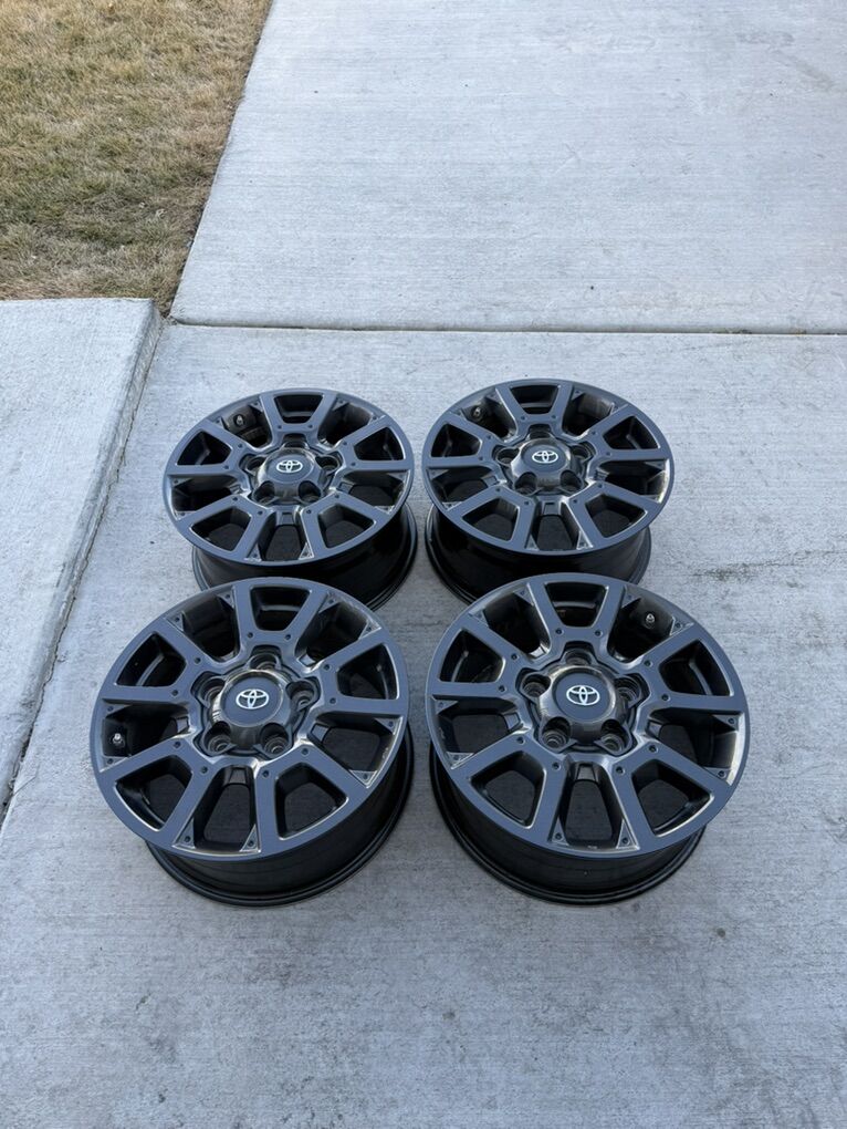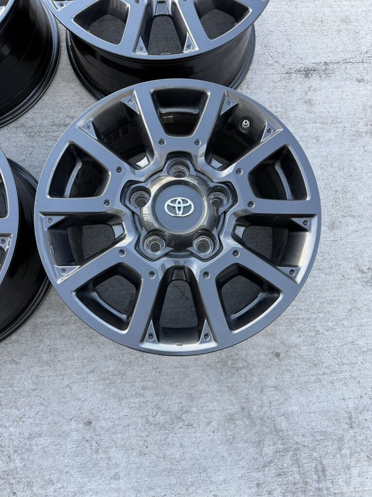 ApplePaySet of 4-Toyota Tundra Sequoia Land Cruiser Rims 18” with sensors like new in excellent condition,asking $1000 obo Comes with sensors Rims are in excellent condition,one rim has a very minor scratch, check picture Bolt pattern 5-150 OEM dark grey color  They will fit Toyota tundra sequoia Land Cruiser Lexus Text anytime 385-402-2292