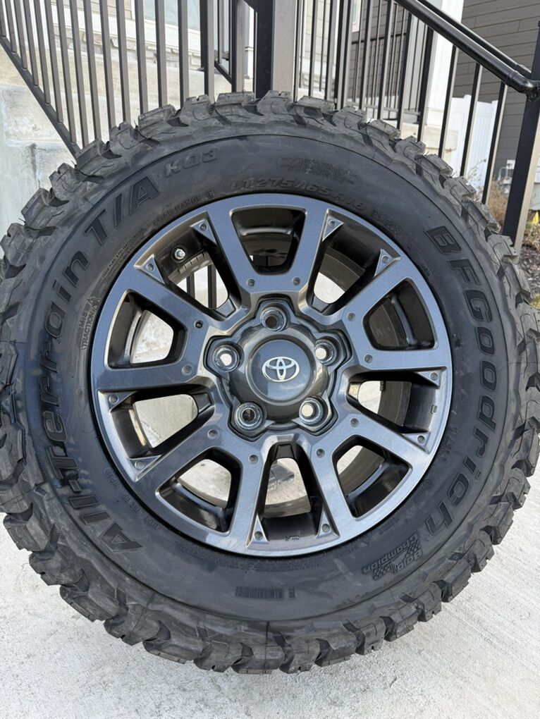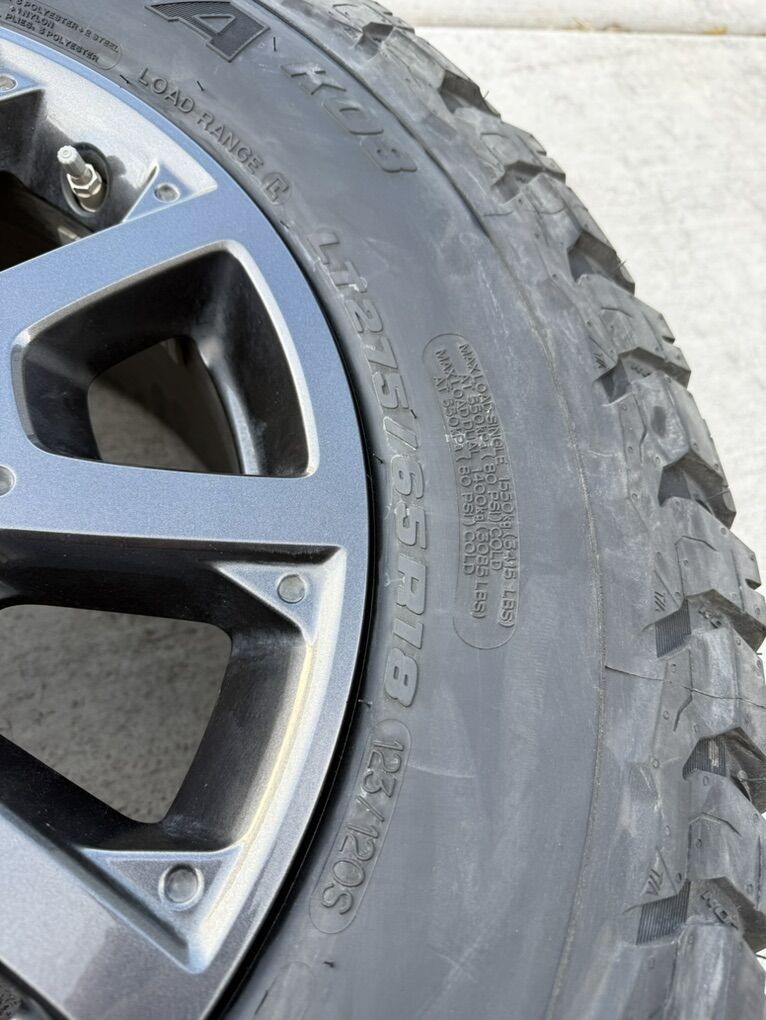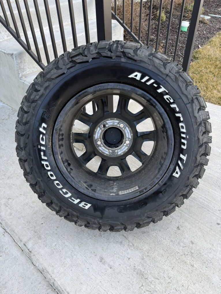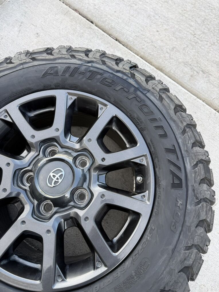 ApplePaySet of 4-Toyota Tundra Sequoia Land Cruiser Rims and Tires 275/65R18 BFgoodrich Ko3 Load E Almost new in excellent condition asking $2150 obo Tires are new only 10 miles on them Rims are in excellent condition I can sell the rims or tires separately Bolt pattern 5-150 Text anytime 385-402-2292