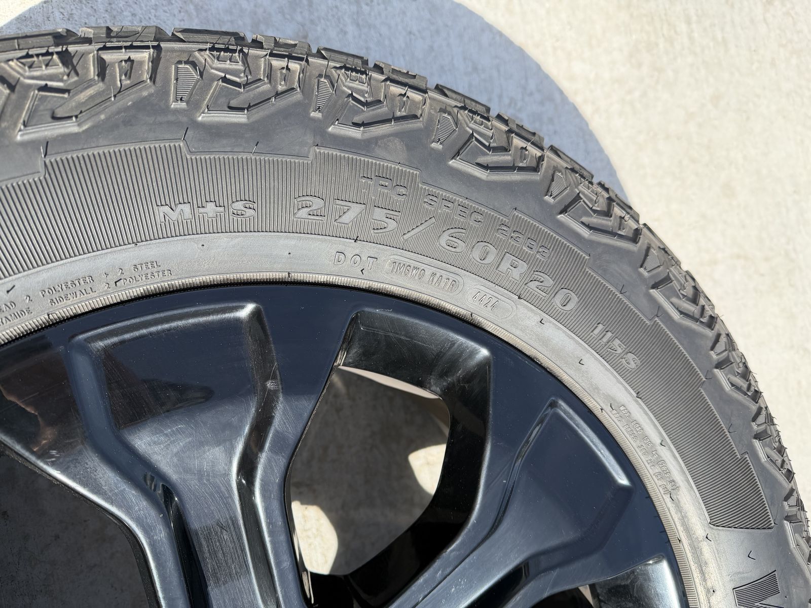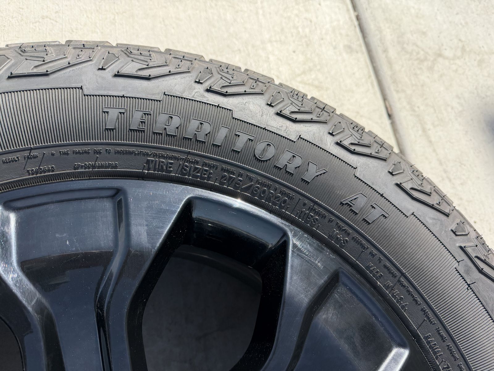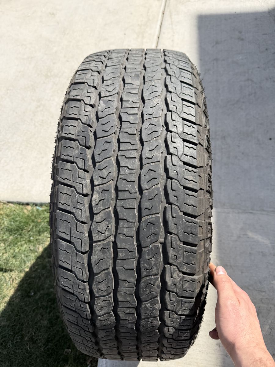 ApplePaySet of 4-Ford F150 Rims and Tires 275/60R20 Goodyear Wrangler Territory AT in great condition asking $1200 obo Tires have lots of tread left Rims are in great condition,1 rim has a curb not affecting anything Comes with 3 sensors,1 is missing Bolt pattern 6-135 Text anytime 385-402-2292