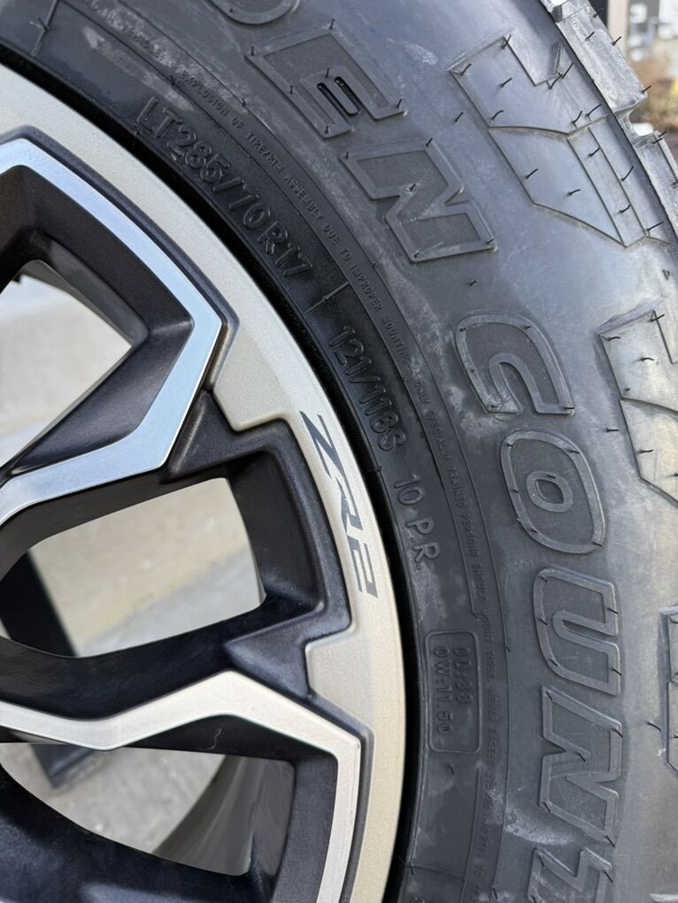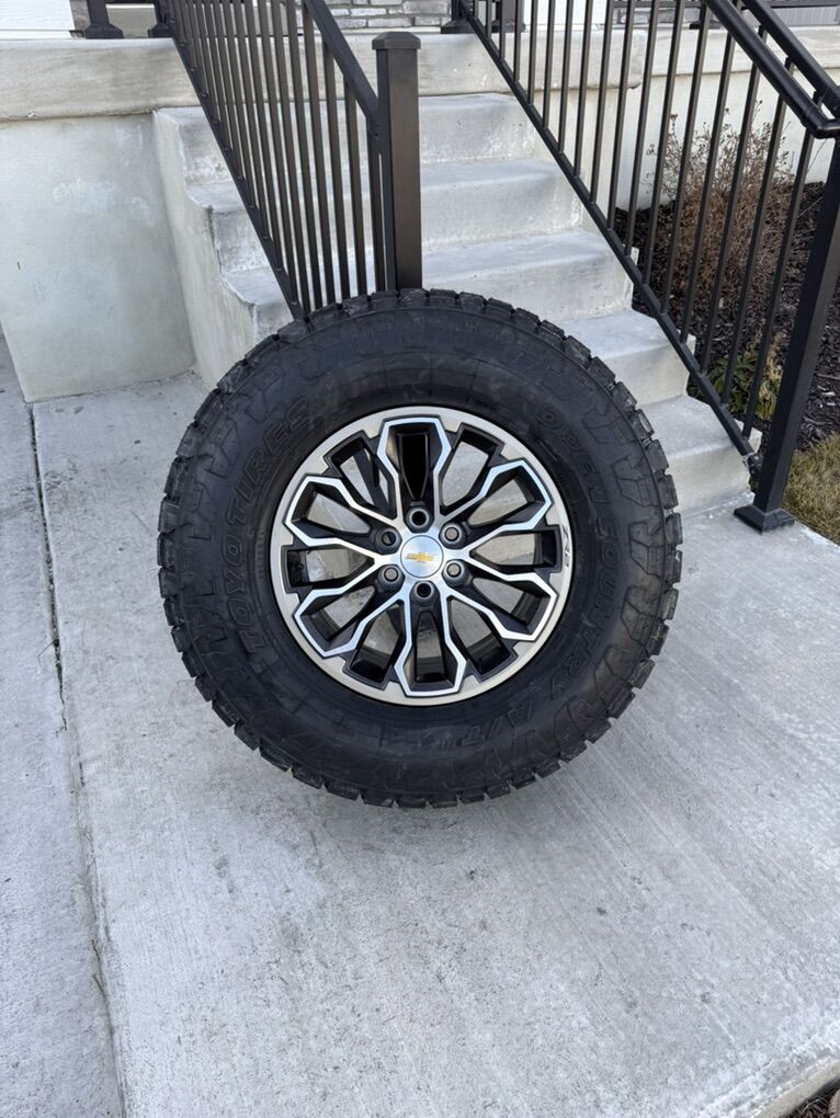 ApplePaySet of 4-Chevy Colorado ZR2 Rims and Tires 285/70R17 Toyo AT3 Load E in excellent condition asking $1850 obo Tires are new Rims are in great condition I can sell the rims or tires separately Bolt pattern 6-120 Will fit Chevy Colorado and gmc canyon Text anytime 385-402-2292