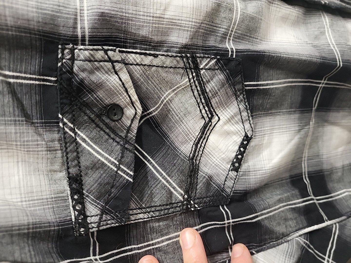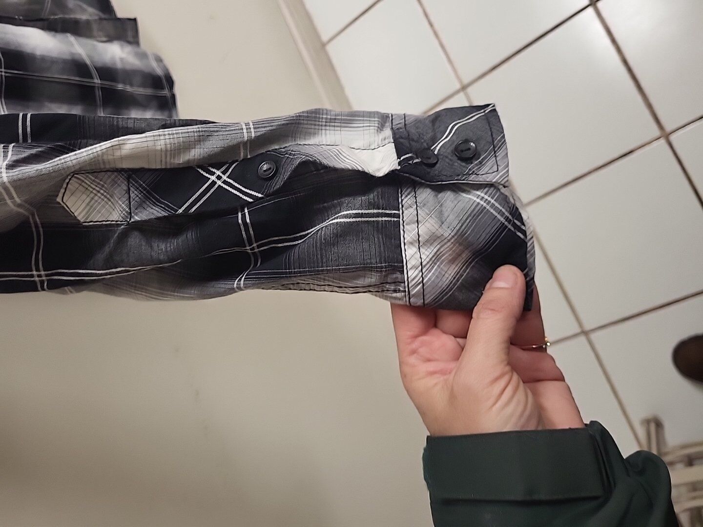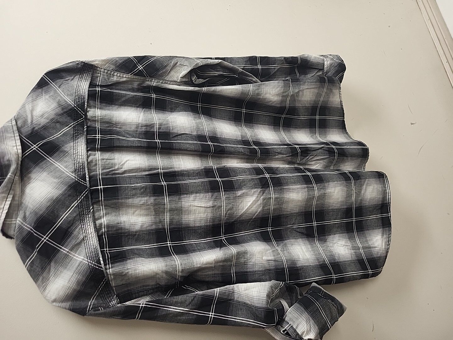 VenmoThis goodlooking countey style shirt can be worn long or rolled sleeves. There is a slight stain on the back of the cuff, as seen in thhe pictures.