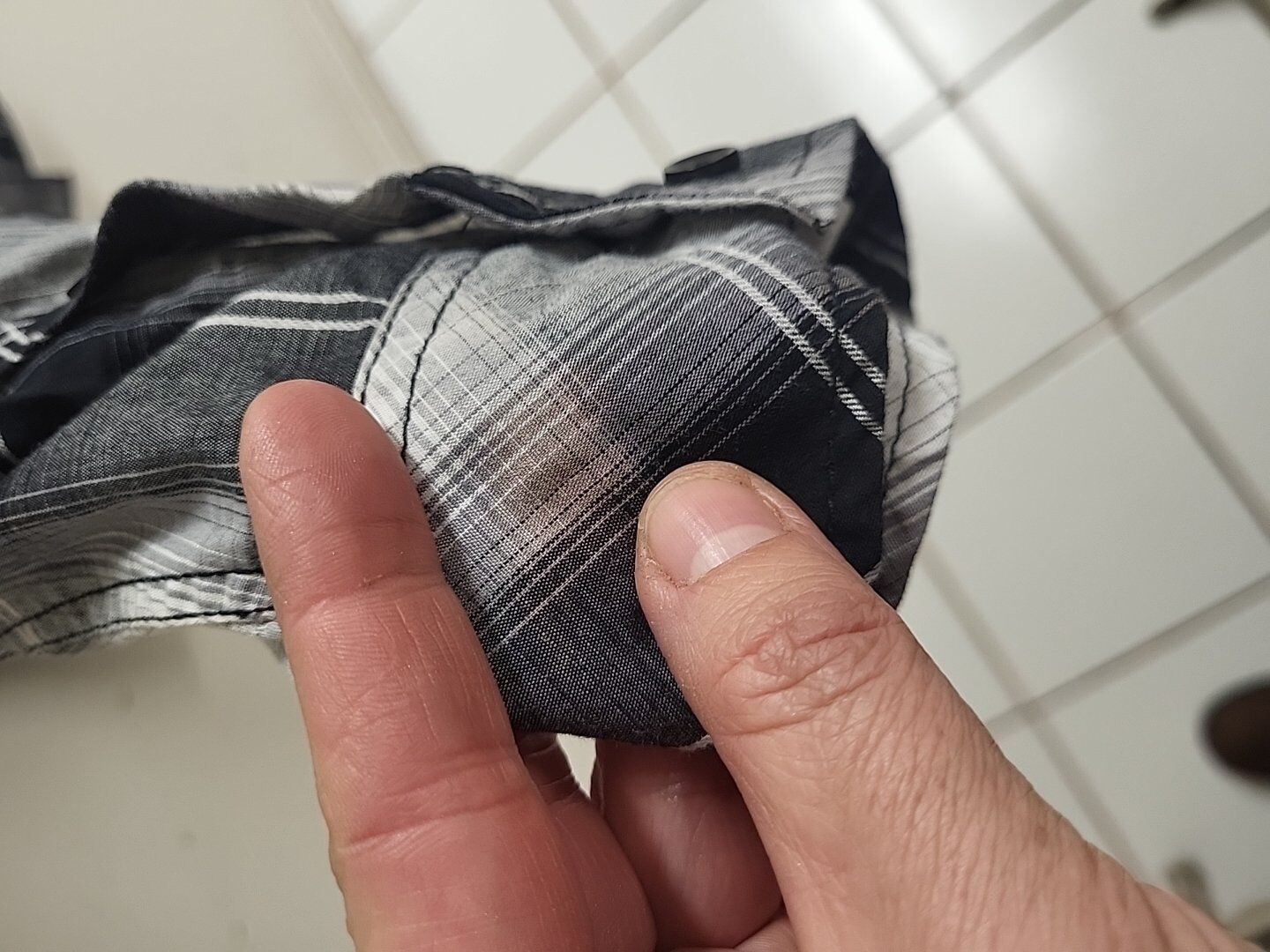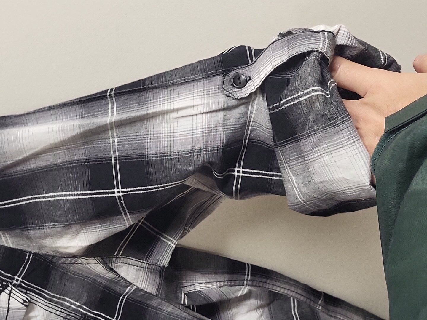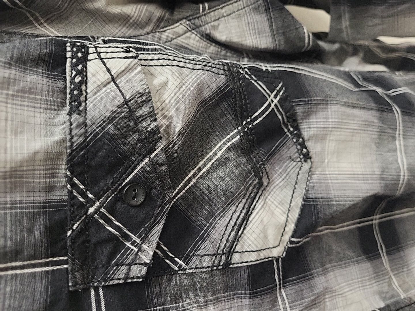 VenmoThis goodlooking countey style shirt can be worn long or rolled sleeves. There is a slight stain on the back of the cuff, as seen in thhe pictures.