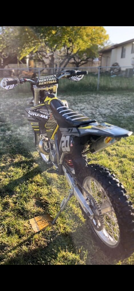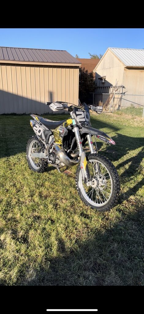 This is my 2002 Suzuki RM250, a pretty clean bike that runs great. It has new restyle plastics kit, custom graphics, full FMF Turbine Core exhaust system. The top and bottom end were just rebuilt and have about 5 hours on them. This bike has some decent power and has never given me any trouble. I'm considering a switch to a 4 stroke open to trades preferably a Honda or Yamaha. Message me with any offers or questions you might have. Message me if you’re interested in more pictures or info. Asking $3000 or best offer. Clean title in hand.