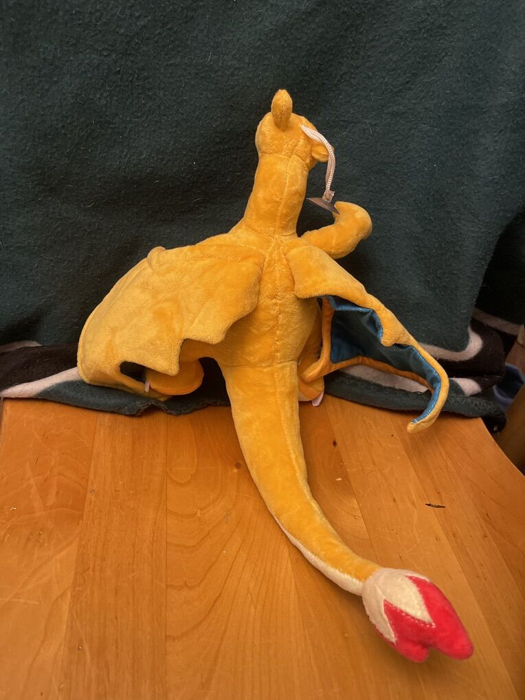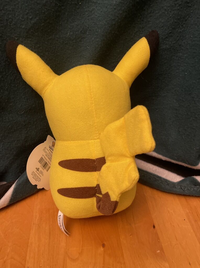Charzard has a default from the manufacturer; his eyes are not correct, they are not aligned. Pikachu has tags and nothing wrong with him. Sprigatito is cute and nothing wrong with her From a smoke free home; there is a cat and dog, but they are never around the items.