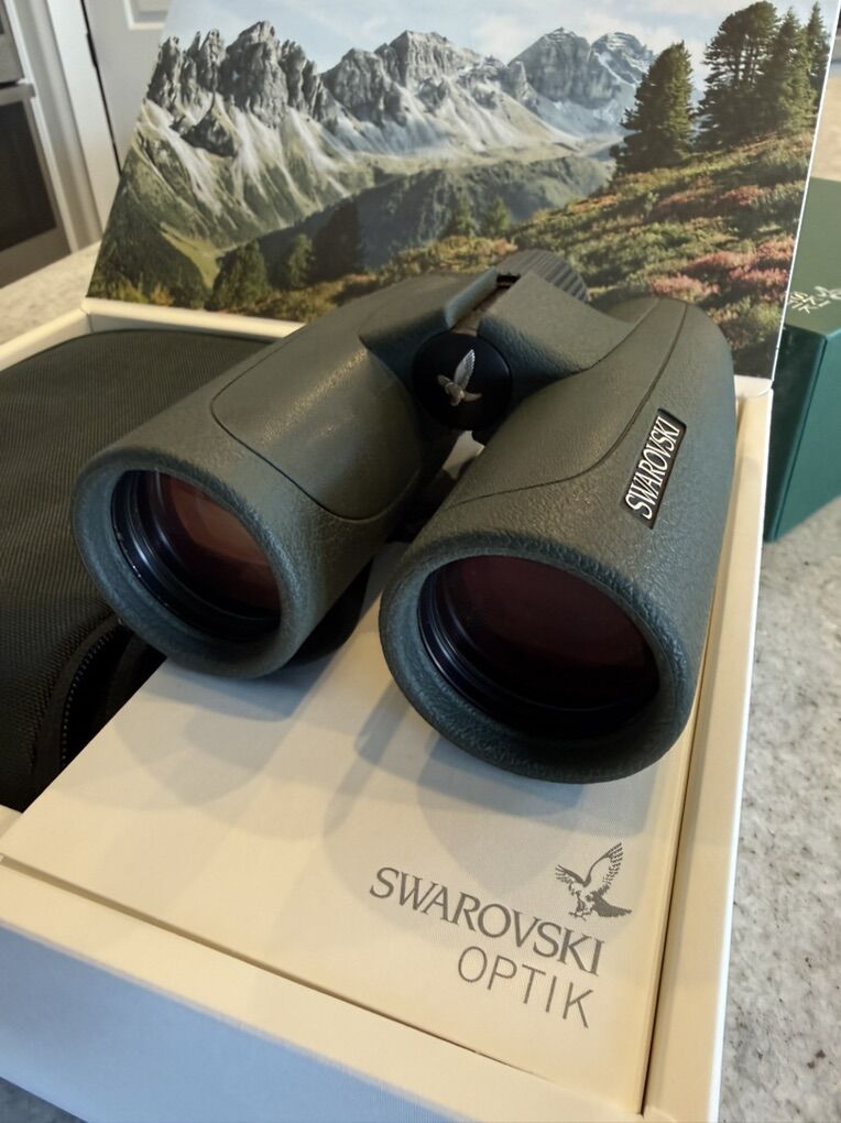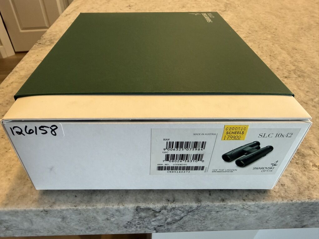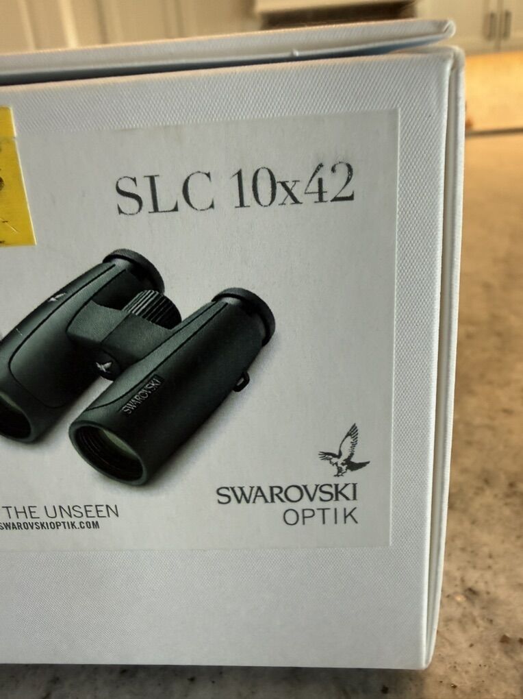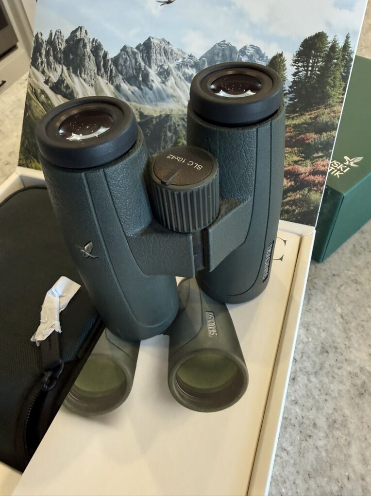 ZelleVery Nice, well maintained 10x42 SLC Binoculars. Sent back to Swarovski last summer for a routine check up and cleaning. These are basically in new condition. Swarovski is the best money can buy in terms of clarity, low light draw, etc.