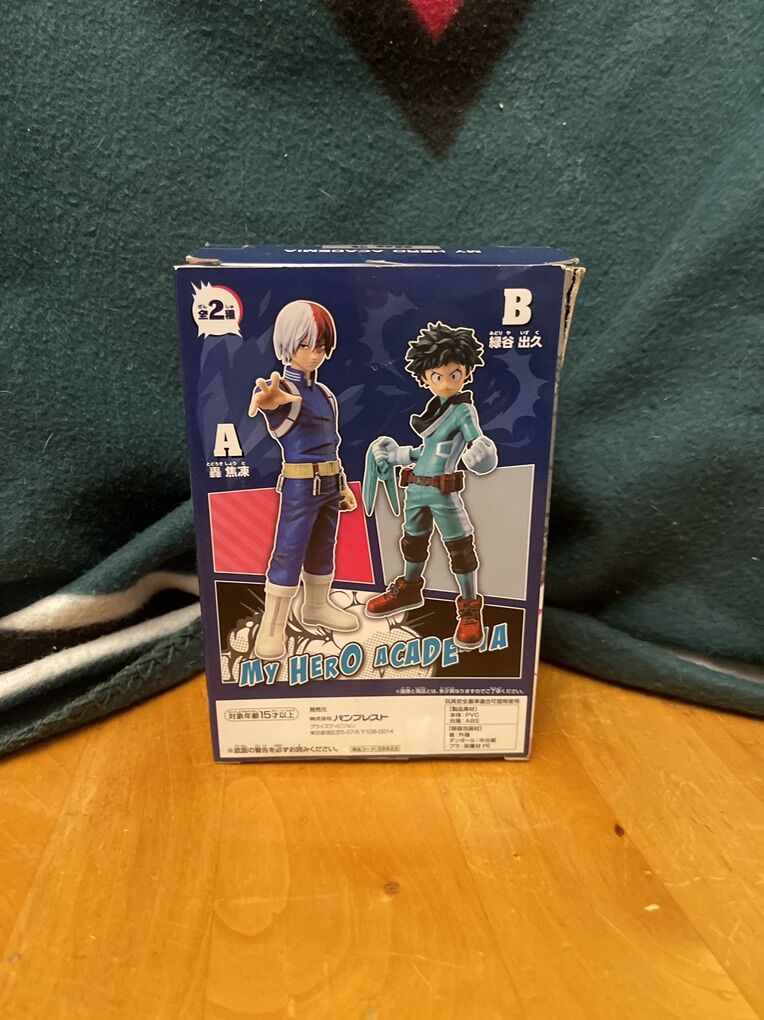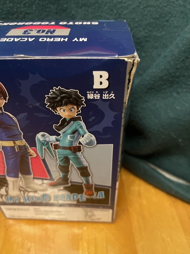 My Hero Academia Shoto Todorki statue, still in the box, the box has some damage, but it does NOT take away the value of the statue. From a smoke free home; there is a cat and dog, but they are never around the items.