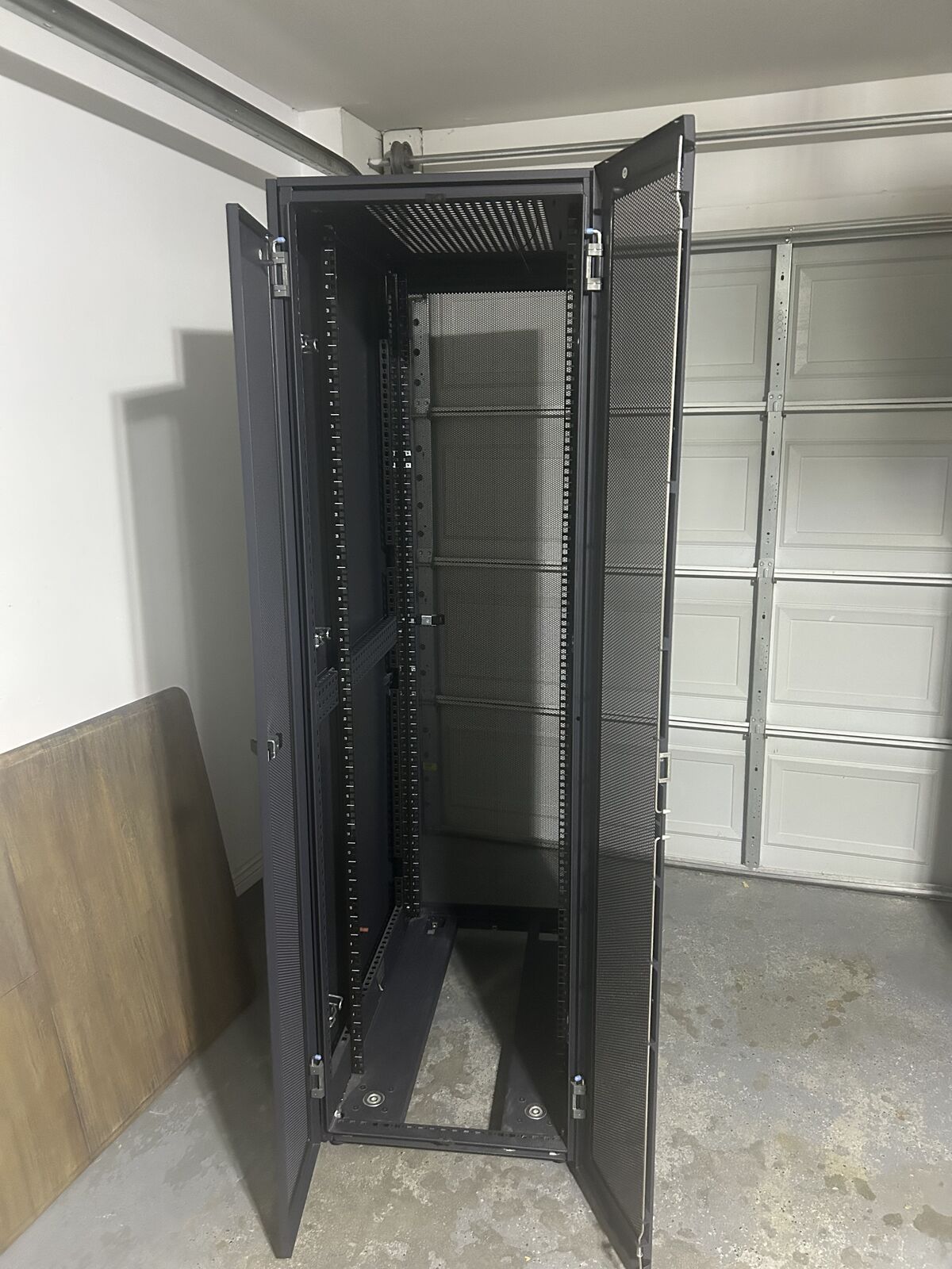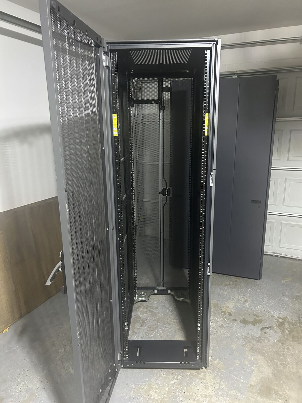 VenmoThe rack has an interior mounting width of 17 3/4 inches and an overall height of 75 inches with a total exterior width of 37.5 inches. Structurally solid and fully functional but it does have cosmetic scratches around the edges from normal use. Ideal for servers, networking or lab equipment. It is only for pickup.