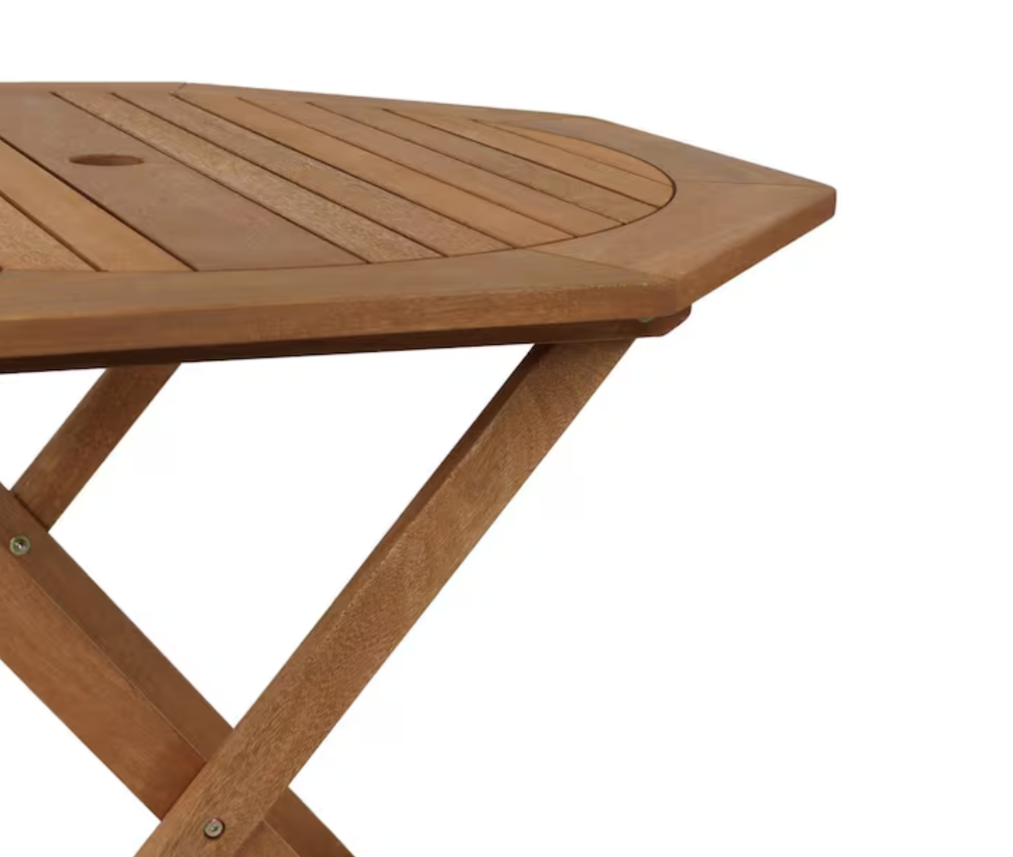 Brand new in box, Meranti Teak Oil Octagon Wood Outdoor Folding Patio Table Assembled Depth (in.) 35.50 in