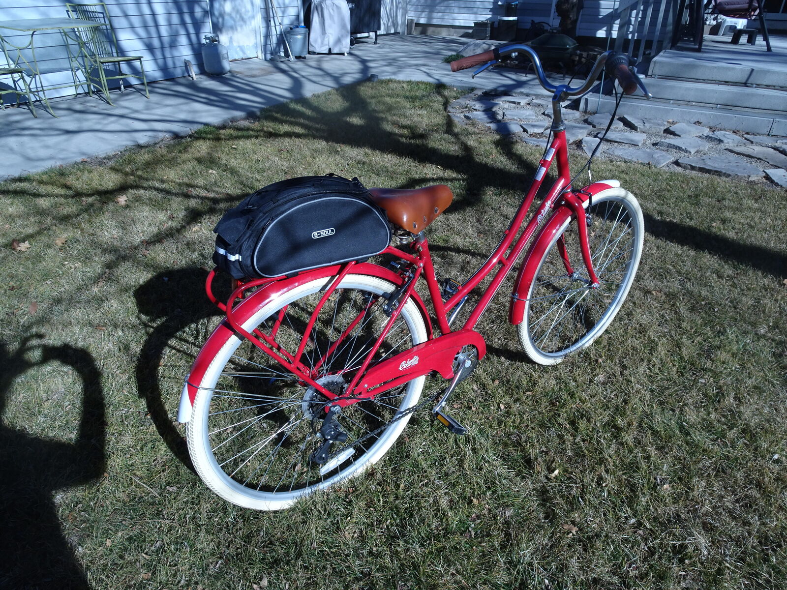 COLUMBIA BICYCLE, women's, Archbar, step through, 700C wheels and 7-Speed. Comes with rear bag. Very good shape and ready to ride.