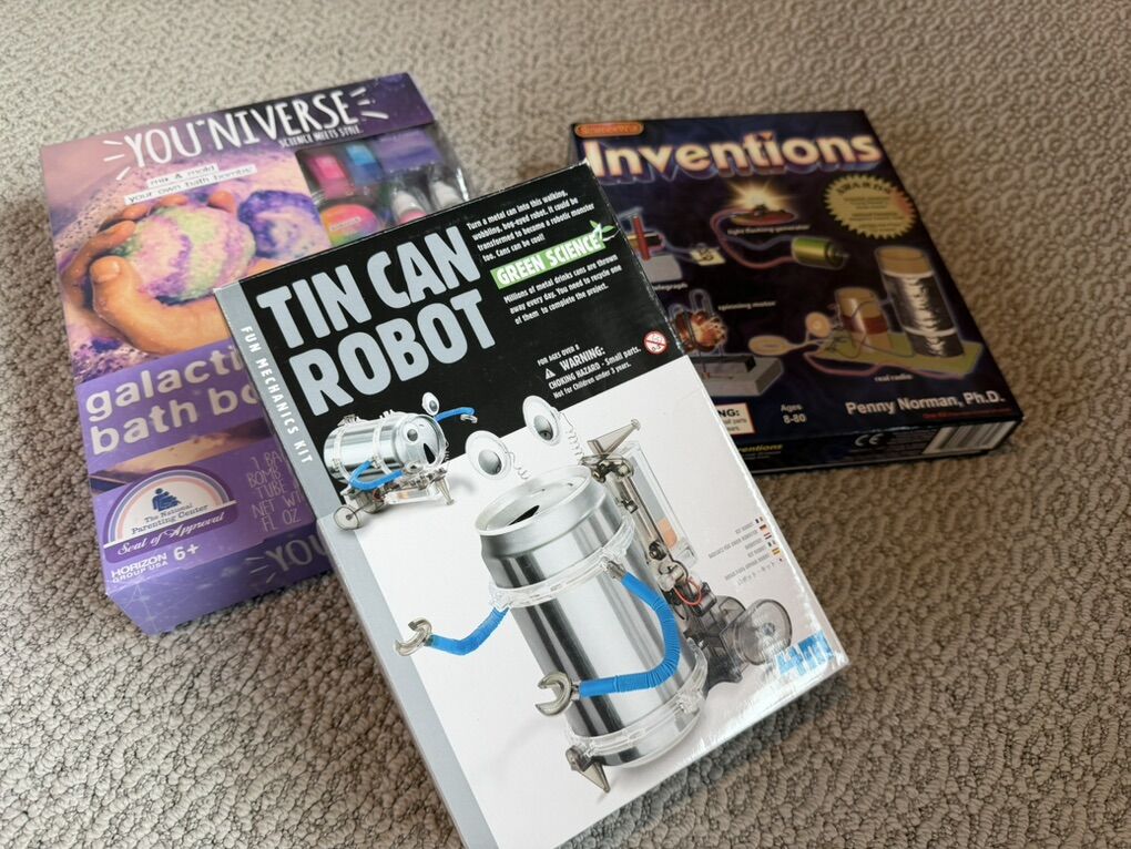 I have 20 TinkerCrates from Kiwi Company that were purchased for homeschool curriculum. Tinker Crates are for kids ages 9–12, they get hands-on with cool experiments and builds centered around STEM. The projects are fun, each one have easy-to-follow directions and will hold your child’s continuing interest as they put them together. Most of TinkerCrates are NEW. Would like to sell all together, Asking $375 Will Also include NEW Inventions Kit to make; clicking telegraph, light flashing generator, spinning motor, and a real radio. And a Tin Can Robot Kit and a Bath Bombs Kit.