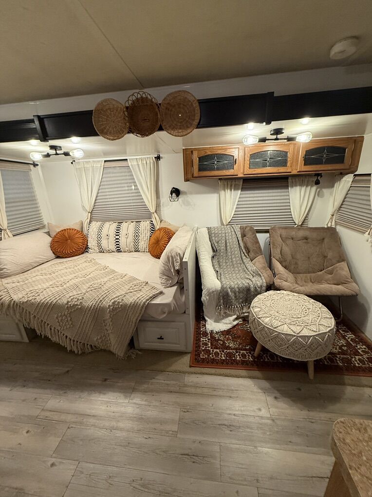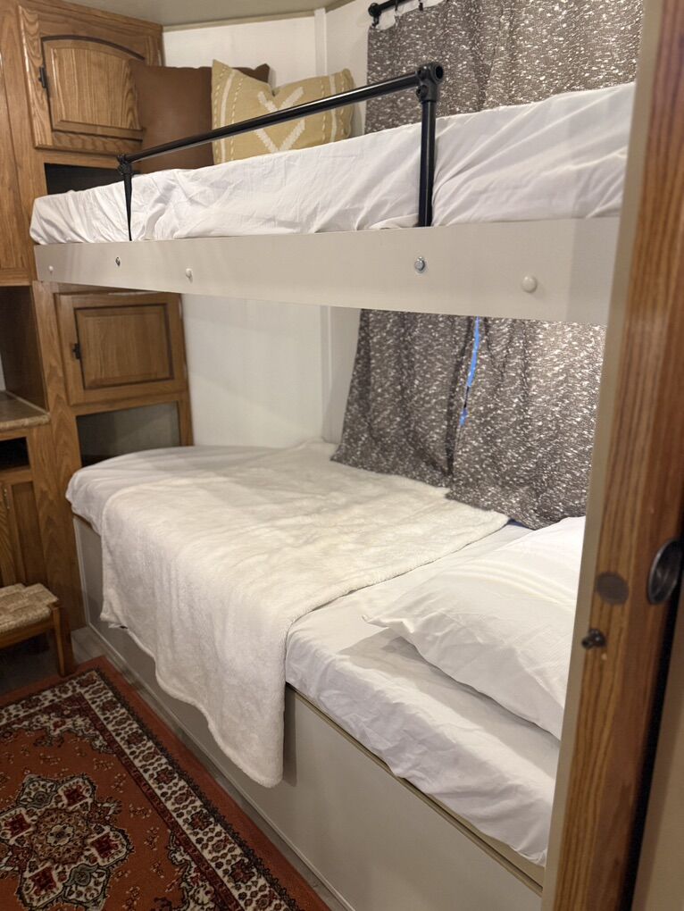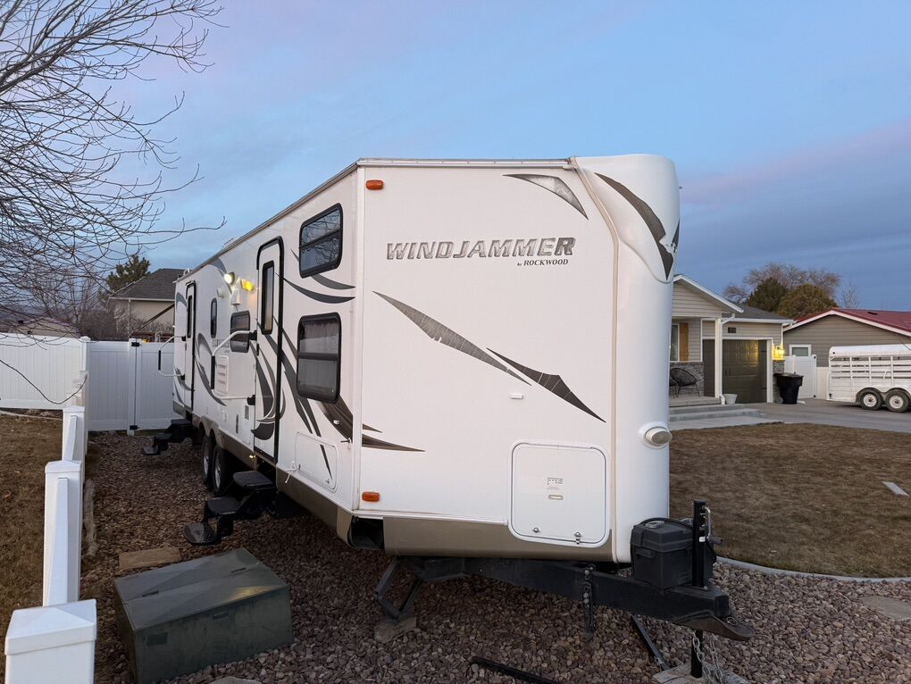 ZelleFully remodeled 34 foot 2013 Rockwood Windjammer 3006W. It has 2 propane tanks with current certification, a new furnace, and a flushed out water heater. Heat and AC work great. Pulls super straight and smooth with torsion axles. There are 6 beds, a queen master, 4 bunks and a full size daybed. The daybed in the main living area converts to a three sided booth with a table and the seating area has custom covers. We replaced the hide-a-bed sofa with removable chairs for versatility. The carpet is original but in good shape, the rest of the floors we replaced. Original cabinets in amazing condition, restored with new hardware, light fixtures and more. Super clean. Message me and I can send more pictures if you’re interested! Message for quickest response or to set up a showing. Located in Vernal, UT but willing to meet up.