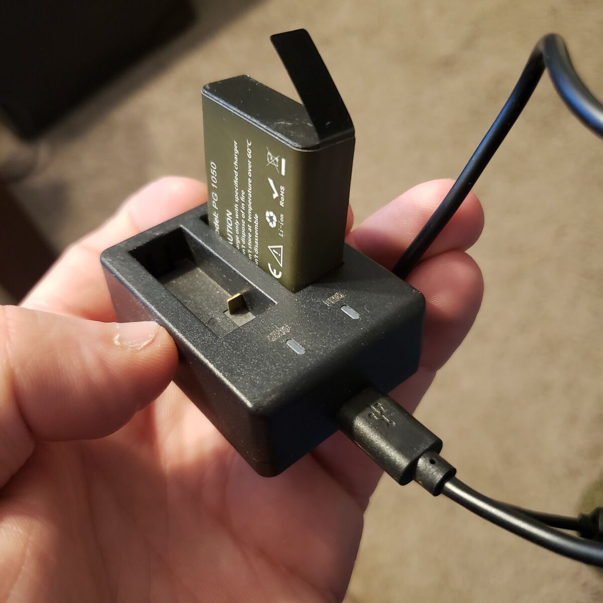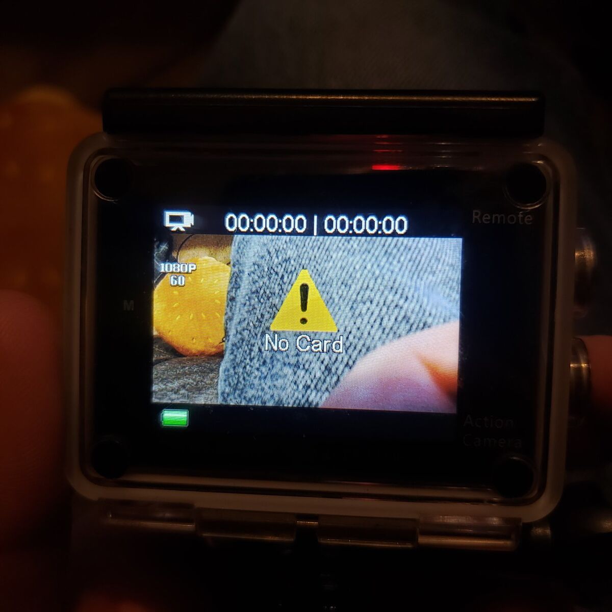 akaso action cam. works great, just needs an SD card. comes with extention rod, 2 batteries and battery charger.
