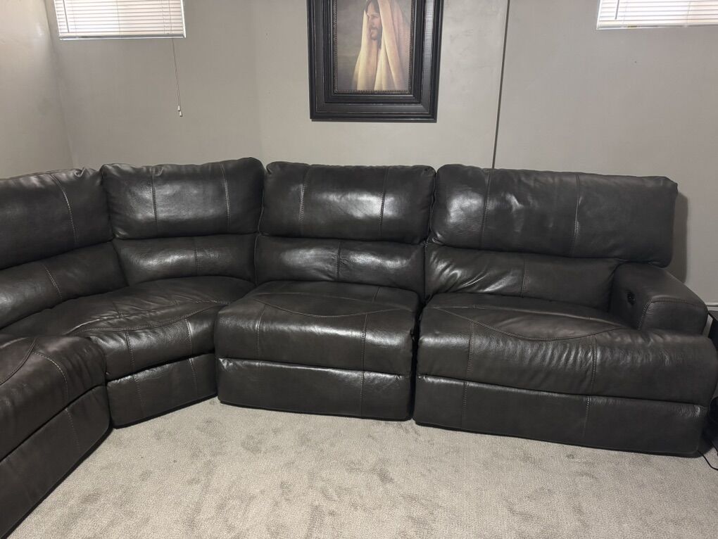 ApplePayElectric leather Sectional with usb ports on both ends. Only 1 year old.