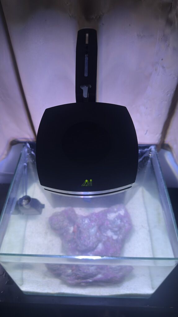 Clean, fully working setup. Includes the 6‑gallon all‑in‑one tank, AI Prime 16HD, filtration, rock