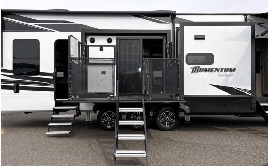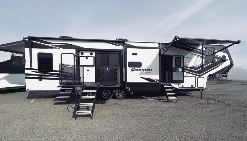 BEAUTIFUL 2021 Grand Design MOMENTUM 399TH-R LOADED. 2 patios. INCLUDING a MoRyde PatioEx Tent.