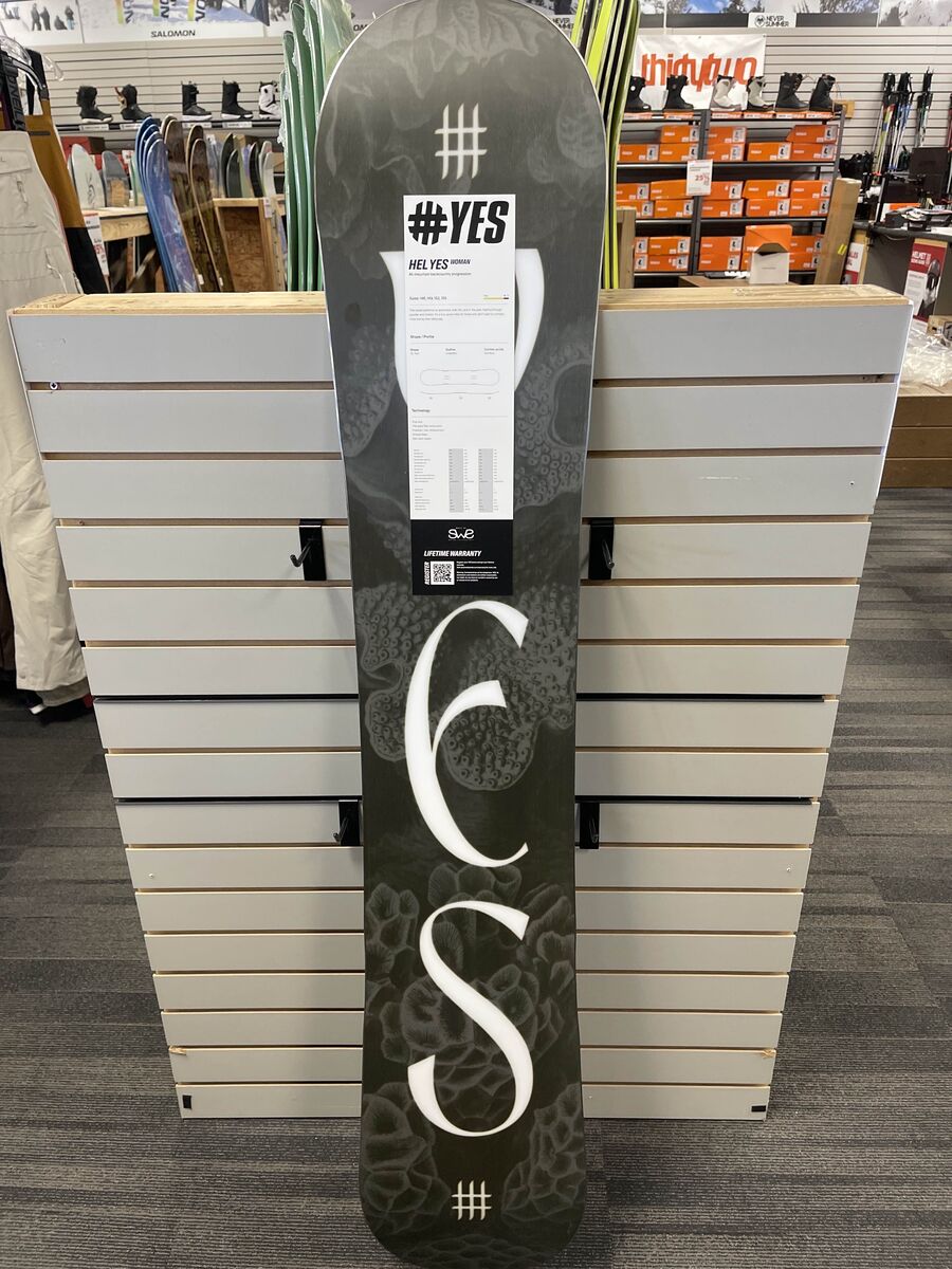 Shop online or in-store, all items can be purchased at ajmotion.com and shipped right to your door! This board performs on groomers, side hits, and in the park, floating through powder and chatter. It’s a true quiver killer for those who don’t want to compromise during their riding day. A directional twin snowboard combines the freestyle versatility of a twin shape with a slight directional emphasis. While featuring a symmetrical shape for switch riding, it incorporates a subtle directional aspect, such as a slightly longer nose or setback stance, enhancing performance in one primary direction. This design maintains a playful feel for freestyle maneuvers while optimizing stability and control, particularly in powder or variable conditions. Ideal for riders who enjoy the park but desire enhanced performance on groomers or in specific terrains, a directional twin provides a versatile compromise between freestyle agility and directional stability. Sintered YES Snowboards' sintered bases are crafted by fusing tiny polyethylene particles under heat and pressure, creating a porous, durable surface. Known for superior speed and wax absorption, these bases are favored by advanced riders for their high-performance capabilities in various snow conditions. Poplar/Paulownia YES Snowboards' Poplar/Paulownia core is crafted from 50% Poplar and 50% Paulownia. Poplar offers lightweight consistency and flex, enhancing agility. Paulownia, even lighter, ensures weight reduction while maintaining strength. This blend creates a lightweight, responsive, and durable snowboard, perfect for various riding styles and conditions. TRIAX Triaxial or "Triax" fiberglass on a snowboard refers to a fiberglass construction where the fibers run in three directions—usually along the length and width of the board and at an angle. This configuration adds torsional stiffness to the board, enhancing its overall stability and responsiveness. Snowboards with triaxial fiberglass tend to have a more precise and controlled feel, making them suitable for riders who prioritize stability at higher speeds, improved edge hold, and better performance in challenging conditions. Triax fiber is often found in snowboards designed for advanced and aggressive riding styles. FOREVER FLEX Forever Flex is a manufacturing process that helps stabilize the flex and rocker profile of a board for its lifetime. Our boards now finish the first stages of production slightly overbuilt and then we “break them in” using a specialized machinery that mimics extreme riding use. By flexing the fresh board fibers and epoxy at the factory the materials settle into their final arrangement within the board layup much the same as if you rode the board for 20 days. This process helps us narrow our production tolerances so the board you buy has a more accurate specified flex and rocker profile that will change less as you ride it more. Flex 8/10 Perfectly symmetrical shape for balanced riding, equally versatile both when used regular and when used in switch. Great balance between feline stability and freestyle mobility, no matter which way you point it. Condition: Like New – Looks and feels nearly unused with minimal or no signs of wear. Topsheet Condition: Like-New – Nearly flawless with minimal or no marks. Base Condition: Like-New – Smooth, freshly tuned base with no visible damage. Edge Condition: Like-New – Sharp, clean edges with no rust, dings, or wear. Specs: Year: 2026 Brand: Yes Model: Hel Yes Type: Snowboard Size: 155CM About AJ Motion Sports: Aspen Plaza 867 East 9400 South, Sandy, UT 84094 Stop by for unbeatable deals! Feel free to call us at 385-262-3644 for more info. Reliable Used Gear Find hidden gems in our constantly updated collection of used rental gear, including skis, snowboards, boots, bindings, and poles. Check back often—new arrivals drop regularly! Savings on New Gear Get deals on the essentials, from gloves and boots to facemasks, helmets, clothing, goggles, and flat skis.