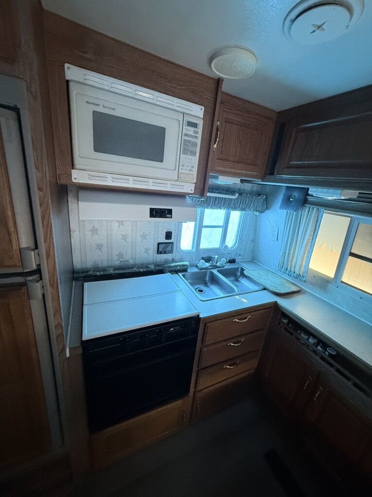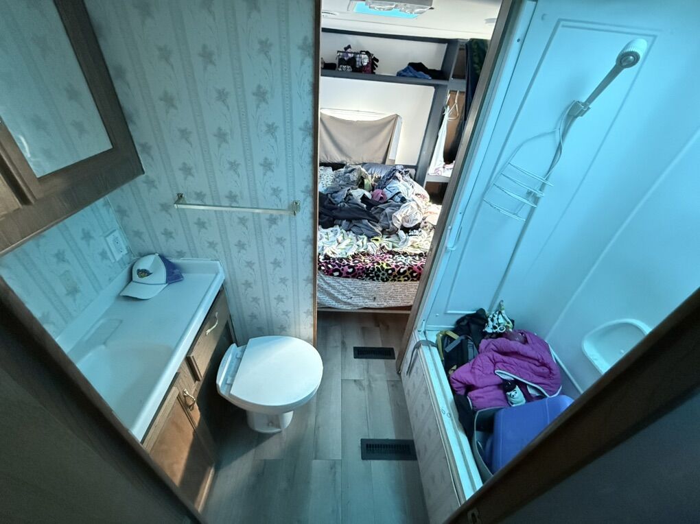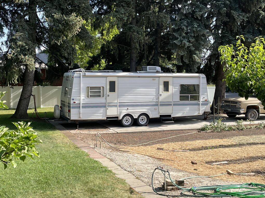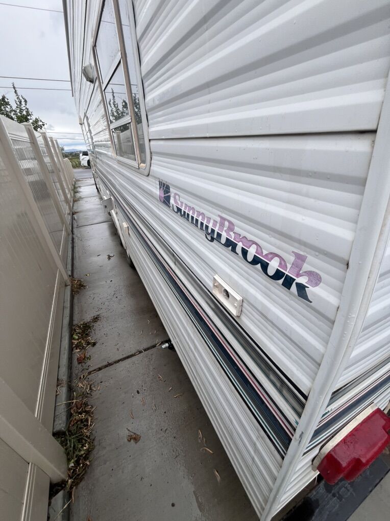Spacious SunnyBrook camping trailer up for grabs! I'm the second owner, my grandparents bought it new and I got it from them. Had a roof leak in the back left, so I remodeled the whole back trailer. It has new flooring, new toilet, new jacks for impact wrench, and 2 new big batteries. Paid a company $6000 for a brand new roof and vents, got docs for proof of service. AC and heater work amazing!