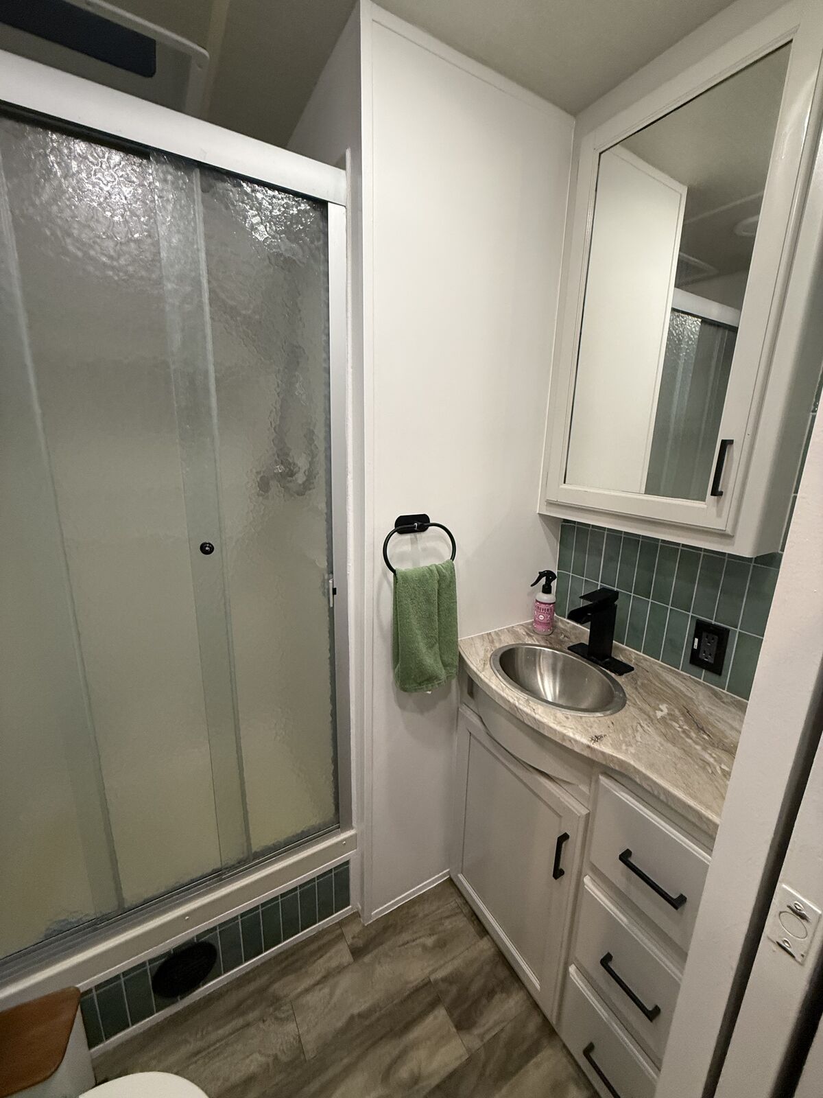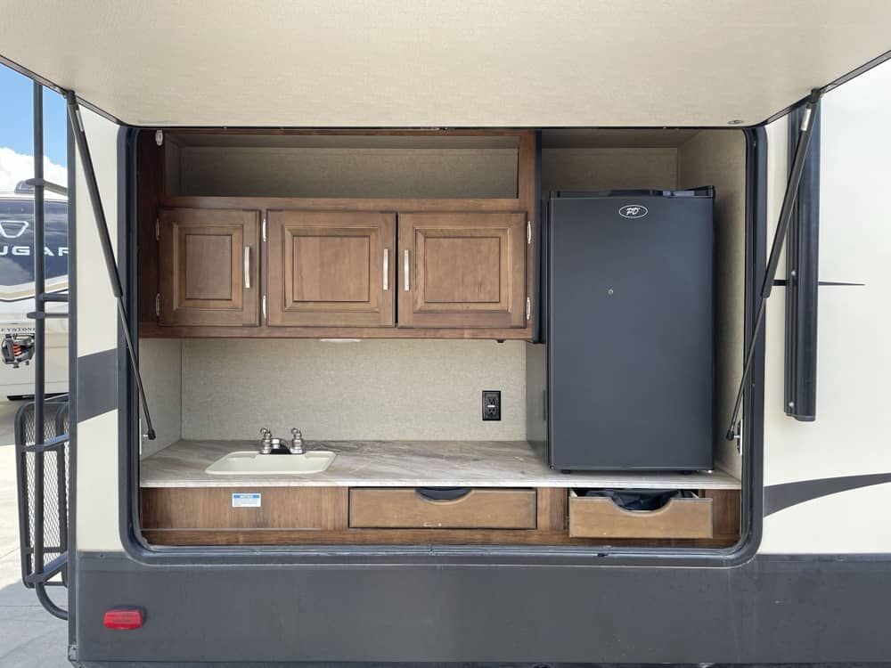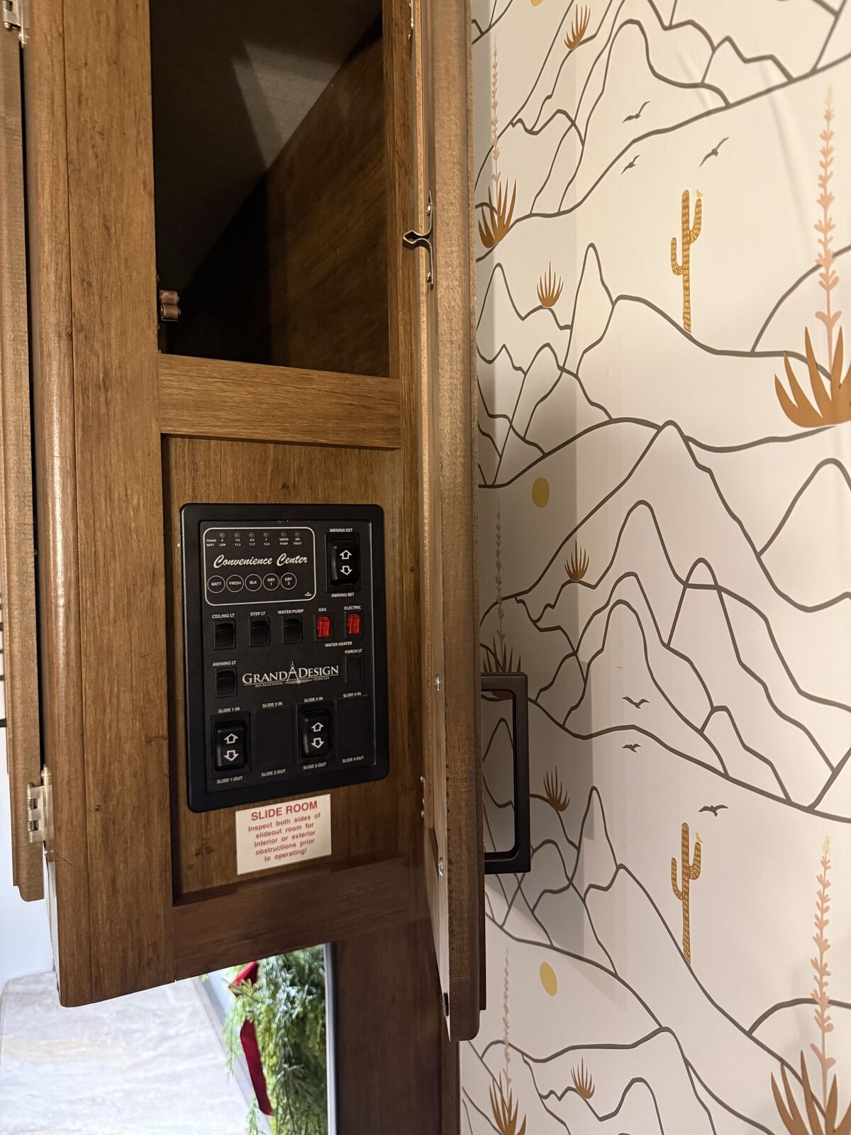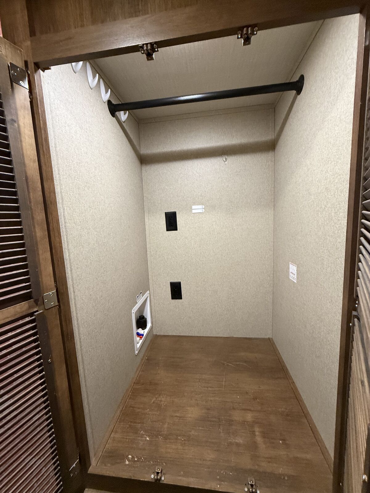 Washer/dryer hookups. Electric stabilizers. Outside kitchen. 1 year old tires that have only been to Kanab and back. Single, easy sewer dump. Nautilus enclosed water system. Enclosed underbelly. Heated tanks. 2 ACs.