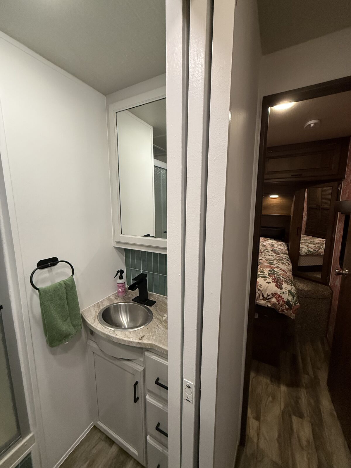 It’s what Josh the RV Nerd calls a flat-bed 5th wheel. It’s the size of a rolling apartment. Keep Your Daydream (YouTube fame) lived full-time in the exact same trailer!