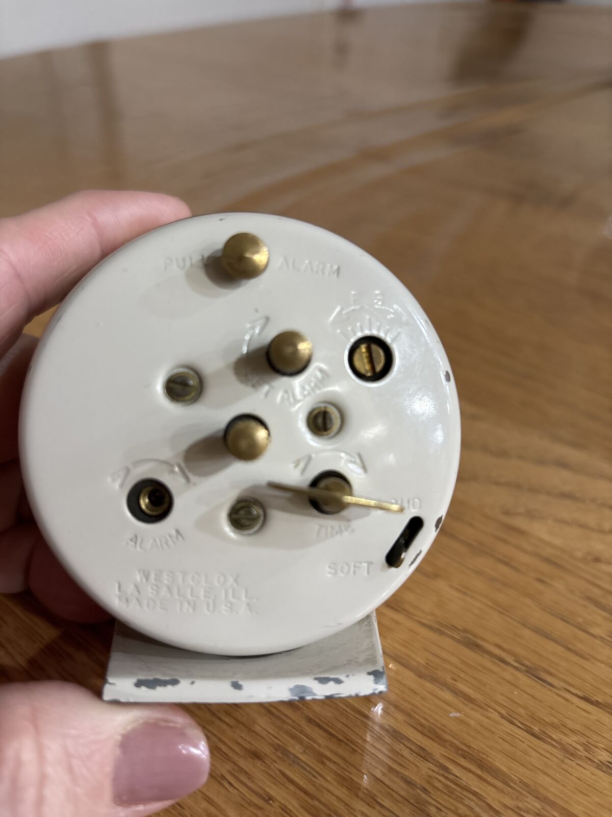 VenmoBaby Ben Westox Alarm clock. Works well. Gold color trim. Off white face with gold color numbers.