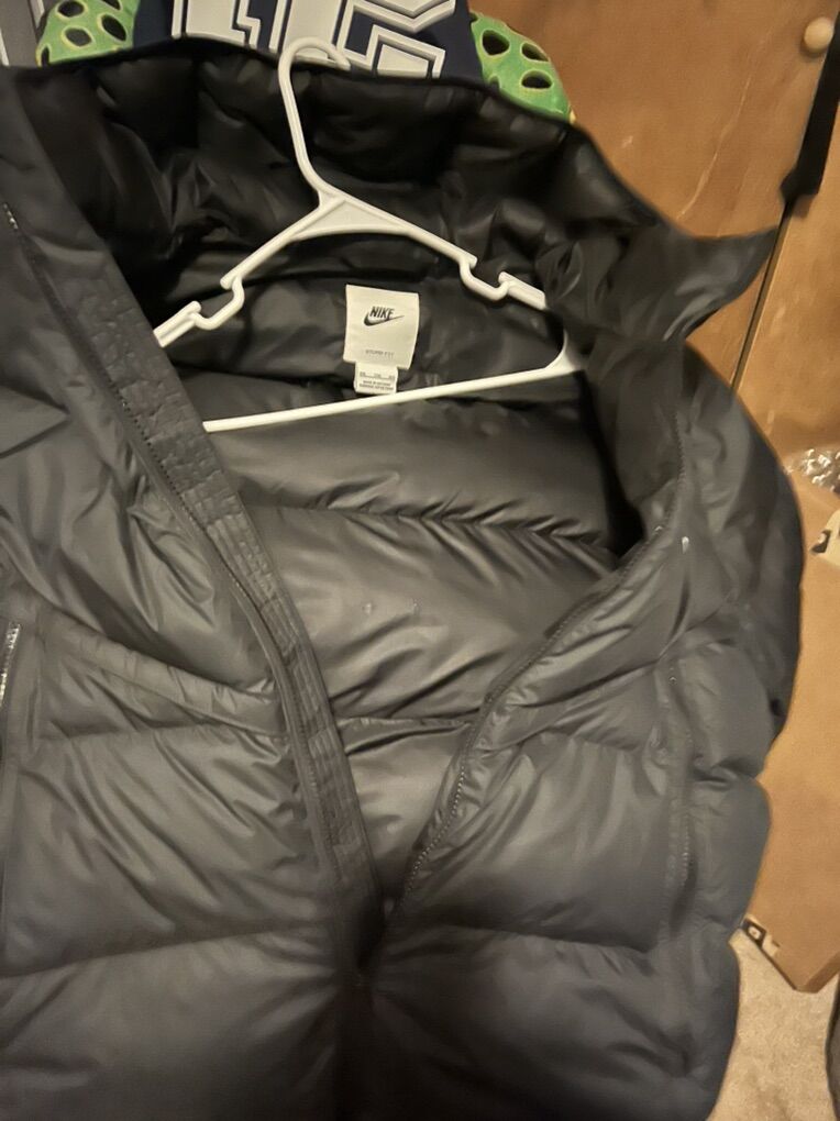 Nike storm fit 2xl ttg and eeg brand new tags were taken off but never used the coat. Great hood 2 zip up pockets to keep your hands warm, this is the storm style very very warm coat
