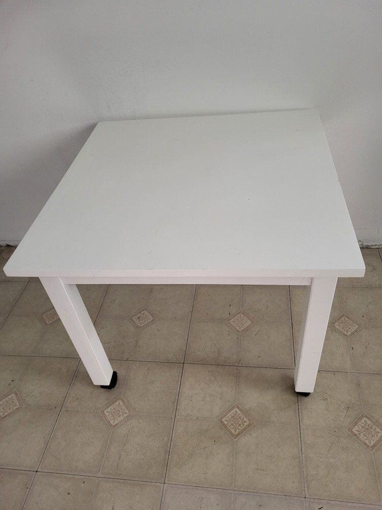 se vende mesa chica tiene llantas es de madera es color blanco esta en muy buenas condiciones si tiene preguntas llamar o mandar mensaje al (801)512-6776