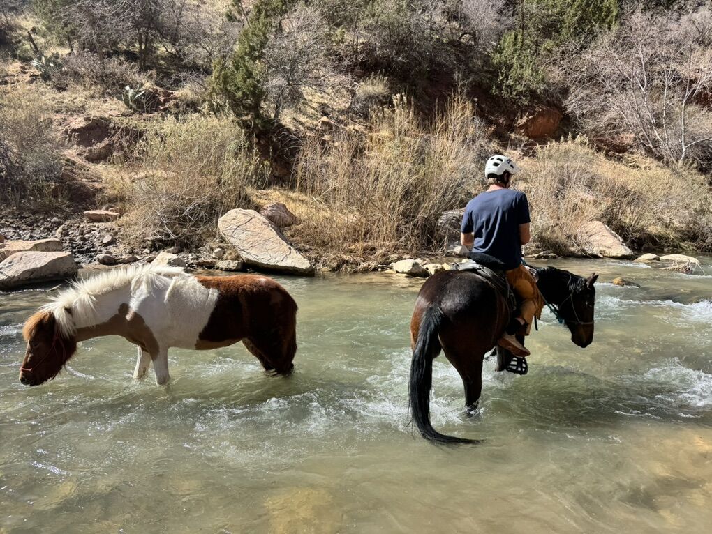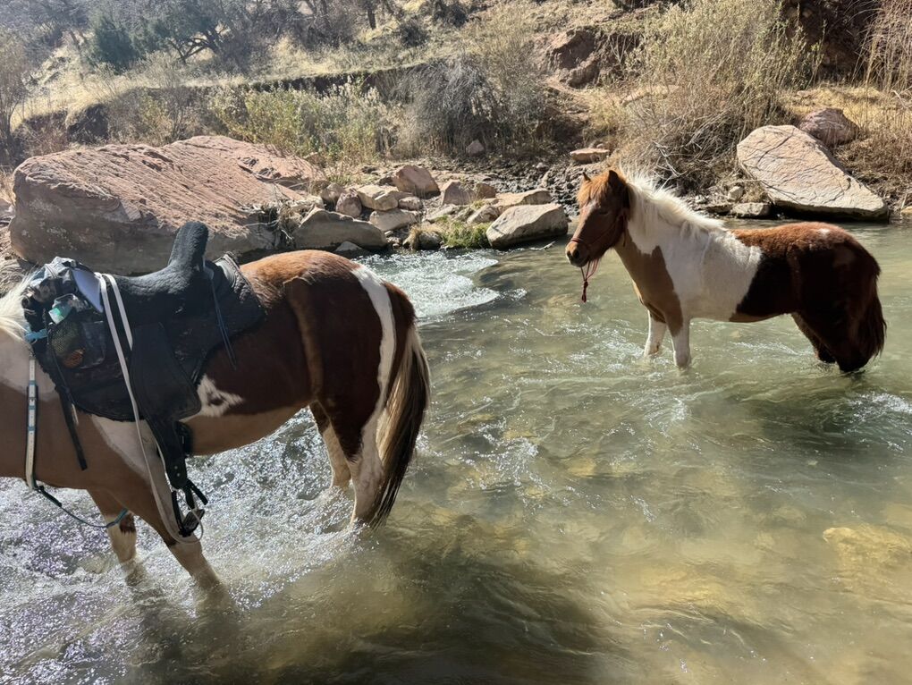 She has had a great start: excellent for the farrier with strong hooves, trailers quietly, stands tied, has worn a saddle and carried a bit with no issues. She ponies nicely, runs free on the trail, and is smart with her footing. She is inquisitive, not fearful and will likely make a solid, confident lead horse.