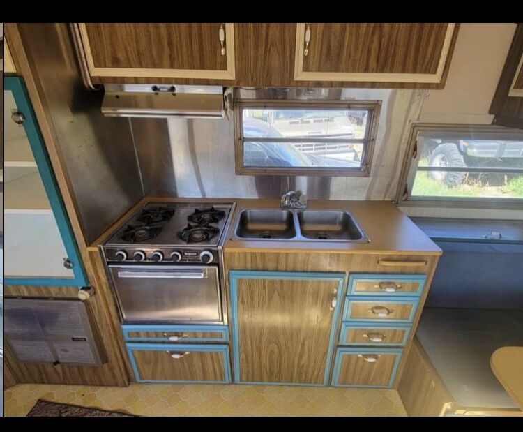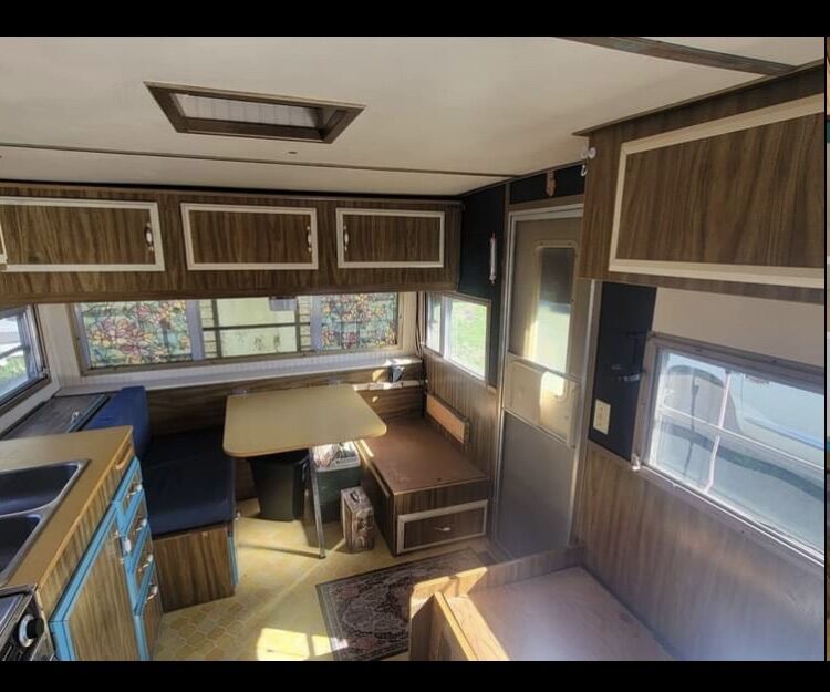 1976 single axle prowler camp trailer. Roof was completely resealed and interior painted and renovated. Shower updated with new shower head and vinyl. Installed solar panels and batteries to supply 12v power which runs all the interior/exterior lighting, water pump, and large 12v dometic fridge/freezer. Propane furnace, stove and oven in working condition. Everything is set up for extended off grid.