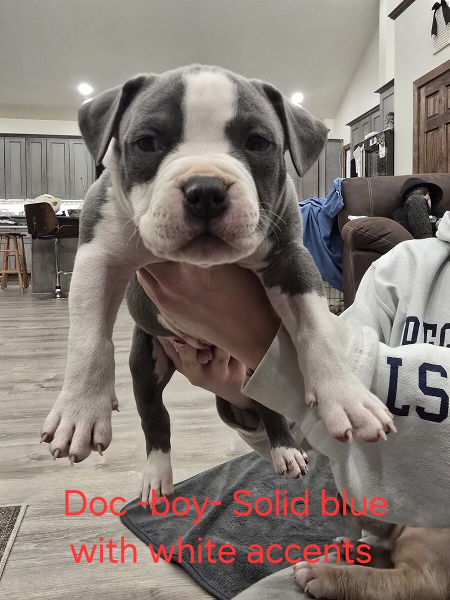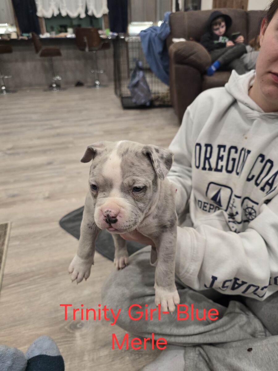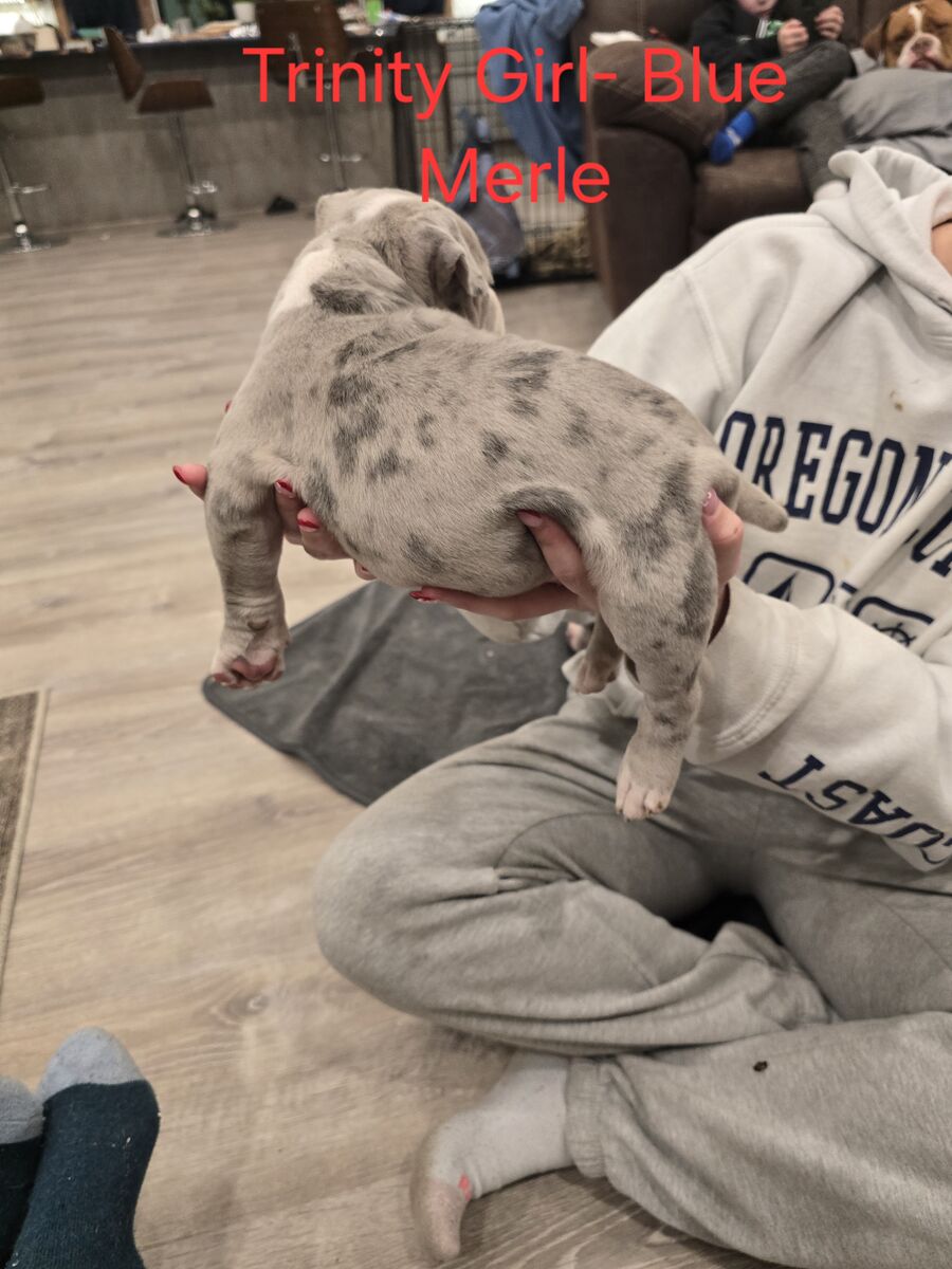 PayPalAmerican bully puppies born 12.24.25 almost ready to go as a pet only companion. Mom is purebred Fawn standard bully and dad is a Chocolate Merle XL bully, both registered with ABKC as well as puppies. 3girls and 3boys available.