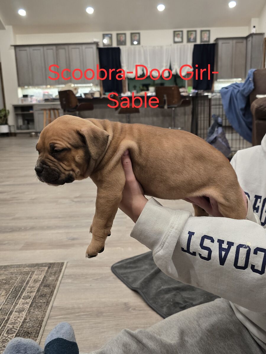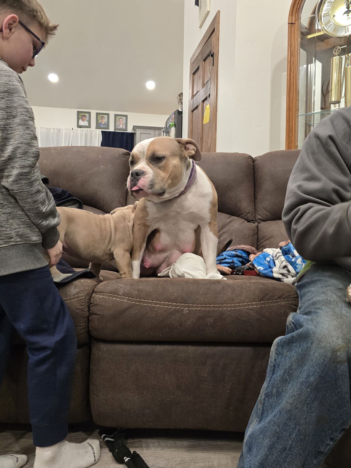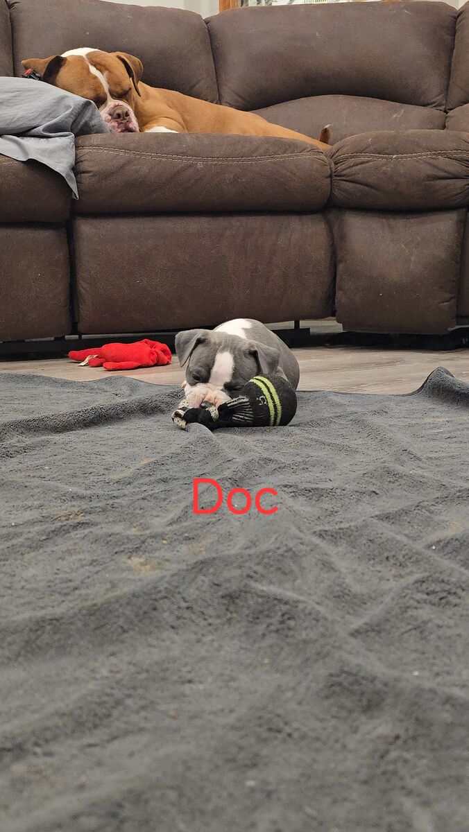 PayPalAmerican bully puppies born 12.24.25 almost ready to go as a pet only companion. Mom is purebred Fawn standard bully and dad is a Chocolate Merle XL bully, both registered with ABKC as well as puppies. 3girls and 3boys available.
