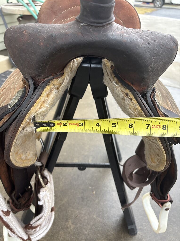 No name 13 inch barrel saddle with 7 inch gullet. Recently cleaned and conditioned. Located 7 miles south of Logan.
